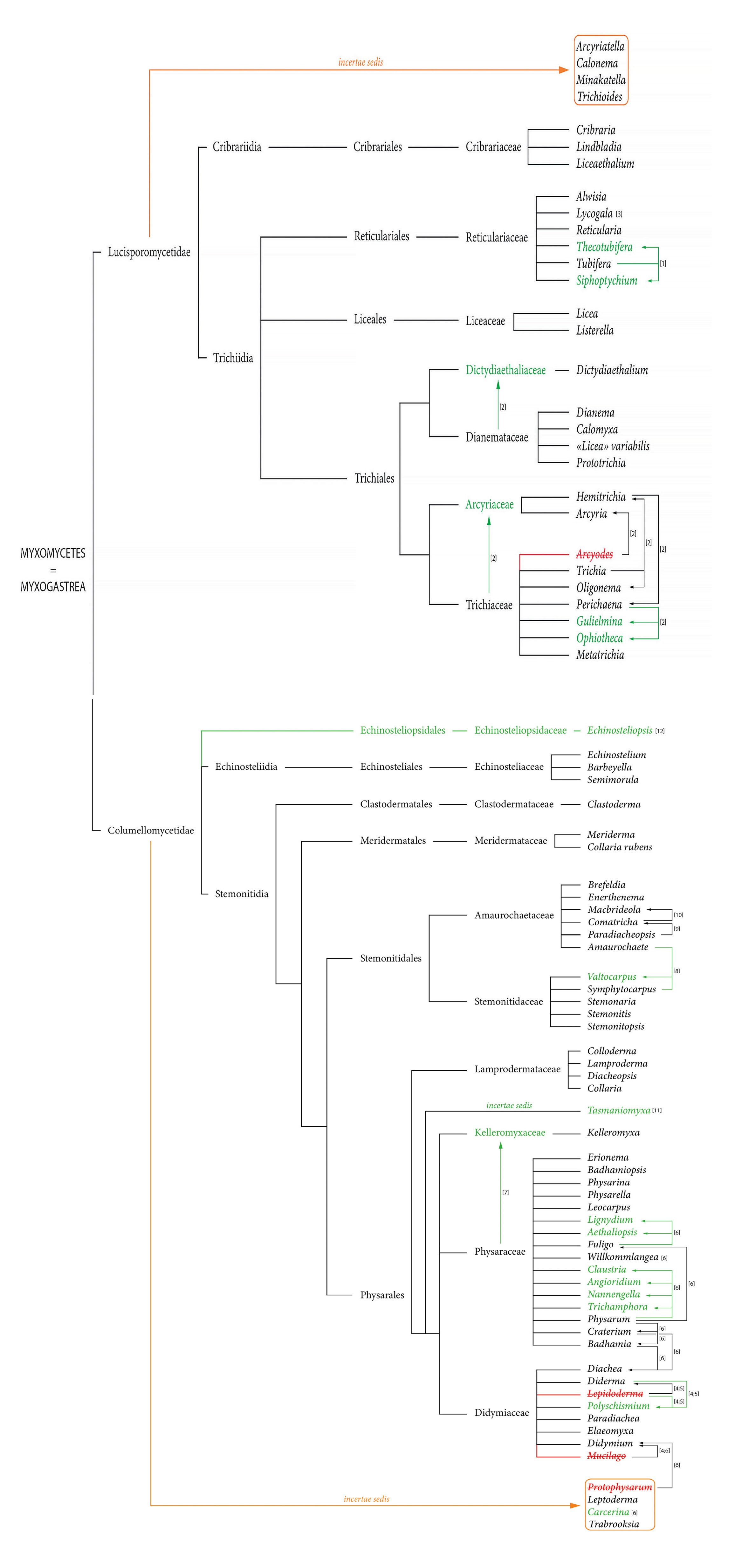 - Leontyev D.V., Schnittler M. The phylogeny and phylogenetically based classification of myxomycetes In: S.L. Stephenson, C. Rojas (eds). Myxomycetes: biology, systematics, biogeography and ecology. Academic Press, London, 2022, pp. 97–124.