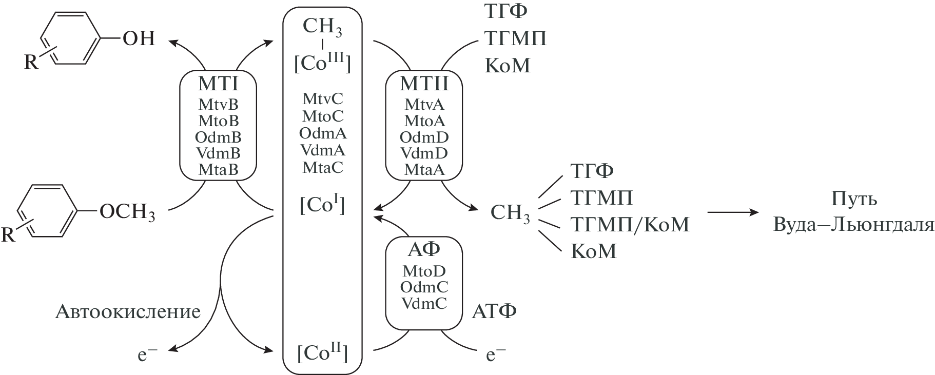 - Kaufmann F., Wohlfarth G., Diekert G. Isolation of O-demethylase, an ether-cleaving enzyme system of the homoacetogenic strain MC // Arch. Microbiol. 1997. V. 166. P. 136–142.