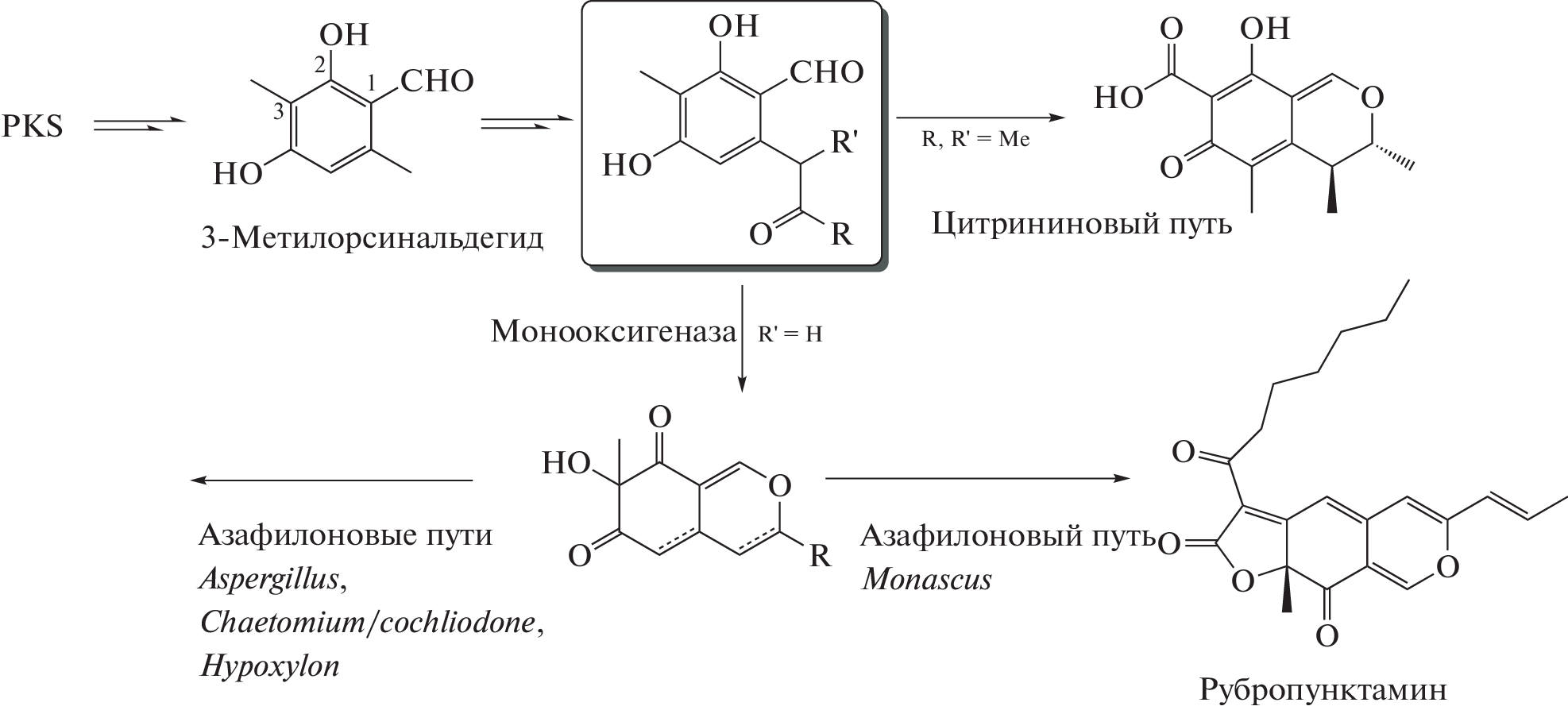 - Chen W., Feng Y., Molnár I., Chen F. Nature and nurture: confluence of pathway determinism with metabolic and chemical serendipity diversifies: Monascus azaphilone pigments // Nat. Prod. Rep. 2019. V. 36. P. 561‒572. https://doi.org/10.1039/c8np00060c