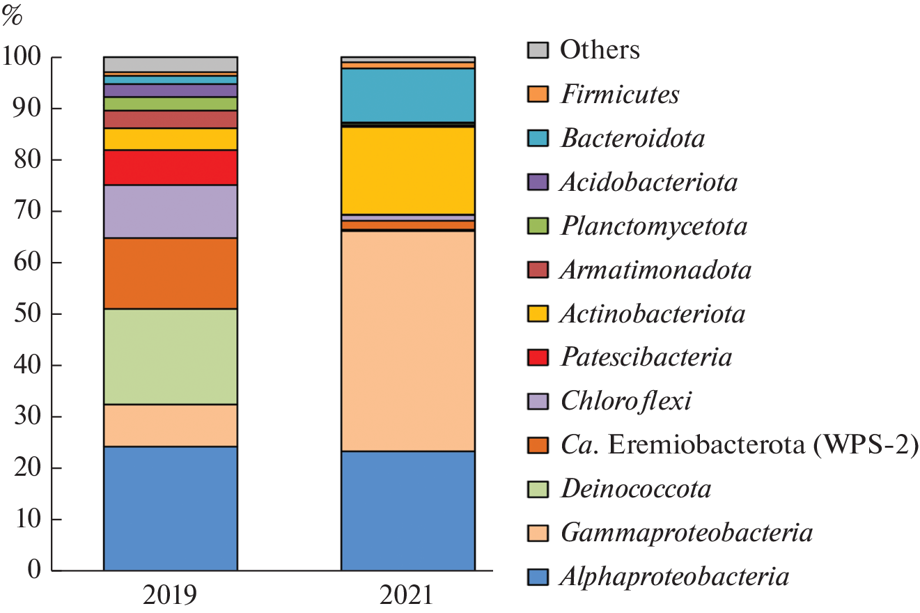 - Ji M., Williams T.J., Montgomery K., Wong H.L., Zaugg J., Berengut J.F., Bissett A., Chuvochina M., Hugenholtz P., Ferrari B.C. Candidatus eremiobacterota, a metabolically and phylogenetically diverse terrestrial phylum with acid-tolerant adaptations // ISME J. 2021. V. 15. P. 2692‒2707.