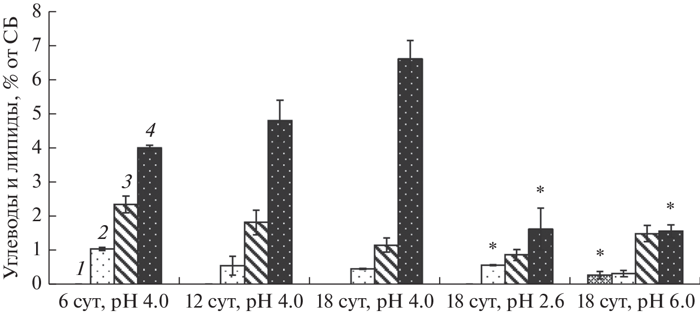 Investigation of the growth rate of Sistotrema brinkmannii at different values of pH values, temperature, and NaCl concentration showed that this fungus was a mesophile, preferred a salt-free medium, and was an obligate acidophile, since it had a pronounced growth optimum at pH 3.0–4.0 and did not grow at pH 7.0. To reveal the protective mechanisms allowing this fungus to develop under acidic conditions, the composition of its osmolytes and lipids was studied. This is the first report on occurrence of a large amount of trehalose (4.0‒6.6% of dry weight) in the mycelium of the fungus during its growth under optimal conditions, confirming the use of osmolytes by acidophiles for adaptation. At the same time, at the borders of the growth range (pH 2.6 and 6.0), the amount of trehalose in the mycelium of the fungus decreased by 2.5 times, which was in agreement with a narrow growth optimum of the fungus in its natural environments (pH 3.0–4.0). The composition of membrane lipids of the fungus was characterized by a high proportion of sphingolipids (up to 60% of the total), which decreased twofold in the course of growth under optimal conditions. The main membrane lipids, apart from sphingolipids, were phosphatidic acids, phosphatidylethanolamines, and sterols; the proportion of these lipids increased with time. The composition of membrane lipids of the fungus at pH 2.6 did not differ much from the optimal conditions, while in the near-neutral region there was a twofold increase in the proportion of sphingolipids, indicating their adaptive value. The simultaneous decrease in the proportion of sphingolipids and the increase in the level of trehalose in the growth dynamics suggest association of these compounds in the protection of cell membranes.