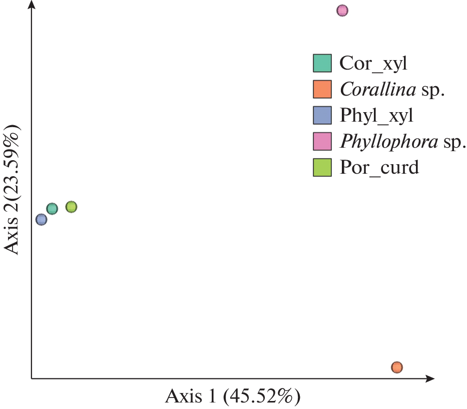 - Brodie J., Williamson C., Barker G.L., Walker R.H., Briscoe A., Yallop M. Characterising the microbiome of Corallina officinalis, a dominant calcified intertidal red alga // FEMS Microbiol. Ecol. 2016. V. 92. P. fiw110.