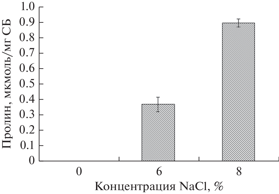Методом спектроскопии протонного магнитного резонанса исследован пул совместимых веществ, накапливающихся в ответ на действие абиотических факторов среды в клетках штамма Glutamicibacter sp. SMB32. Средой обитания исследованного штамма являлась техногенно засоленная почва района солеразработок Верхнекамского месторождения калийно-магниевых солей (Пермский край, Россия). Штамм SMB32 рос в диапазоне температур 5‒35°С. Выявлено, что при 5 и 32°С в клетках значительно увеличивалось количество трегалозы, чем при 25°С. Glutamicibacter sp. SMB32 был способен расти как без соли, так и в присутствии до 11% NaCl. В клетках, выращенных в среде без хлорида натрия, преобладал глутамат. В условиях высокой солености среды (8% NaCl) в клетках исследованного штамма доминировали трегалоза, пролин, глутамин и глутамат. Повышение солености среды культивирования приводило к возрастанию внутриклеточных количеств пролина. В представленной работе на примере штамма SMB32 впервые показана способность бактерий рода Glutamicibacter к синтезу маннита, и продемонстрирована зависимость его аккумуляции от режима аэрации. Таким образом, штамм Glutamicibacter sp. SMB32 обладает высокой пластичностью метаболизма, проявляя способность адаптироваться к неблагоприятному действию разных физико-химических факторов.
