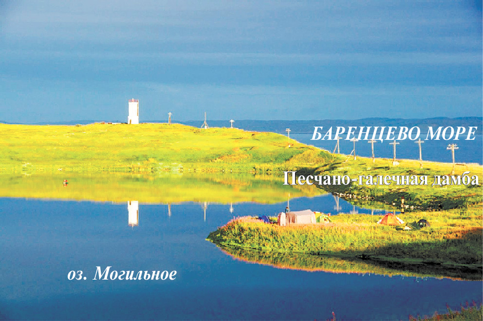 Озеро Могильное находится в высоких широтах Арктики (69°19′11″ с. ш., 34°20′55″ в. д.) на острове Кильдин (Мурманская область). Оно привлекает внимание гидрологов и биологов уже более ста лет (Исаченко, 1914; Дерюгин, 1927; Gorlenko et al., 1978; Иванов и соавт., 2001; Лунина и соавт., 2005; Strelkov et al., 2014, 2019; Krasnova et al., 2018; Краснова, 2021; Беленкова, Саввичев, 2021). Это сравнительно небольшой мезотрофный анхиолиновый меромиктический водоем, содержащий сульфид, с практически полным отсутствием циркуляции воды между слоями различной минерализации. От Баренцева моря оз. Могильное отделено с южной стороны дамбой из песка и гальки шириной 70 м и высотой до 5.4 м, через которую просачивается морская вода (рис. 1). С северной стороны в озеро поступают пресные поверхностные воды. В результате смешивания морских и пресных вод образуется устойчивая стратификация водных слоев от почти пресных на поверхности (соленость около 5‰) до соленых на дне (соленость до 30‰).