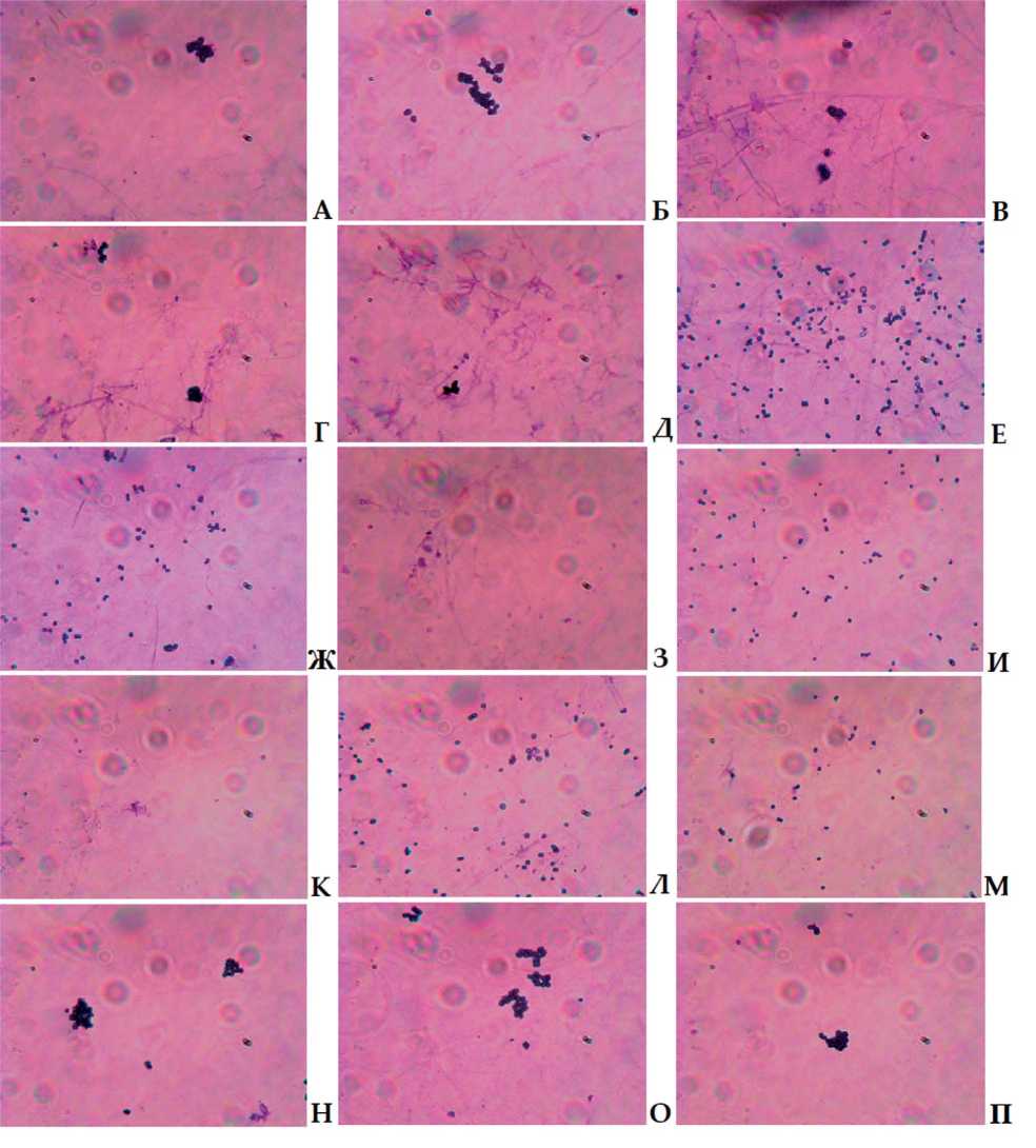 Следует отметить, что степень агрегации в моновидовых биопленках K. schroeteri была выше, чем в других исследованных биопленках. Максимальное количество агрегатов обнаружено через 24 ч инкубации и составляло 71% от совокупного количества агрегатов и одиночных клеток, наблюдавшихся в поле зрения (рис. S3Б), тогда как через 72 ч инкубации число агрегатов снижалось до 63% (рис. S3Е). В моновидовых биопленках S. aureus относительное количество агрегатов было максимальным через 48 ч и составляло 56% (рис. S3Г).
