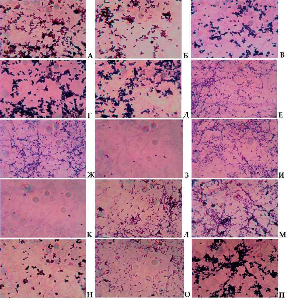 Определение числа КОЕ. Диспергирование биопленок проводили методом, описанным ранее (Ovcharova et al., 2021). Чашки с агаризованной средой RCM, на которых рассевали суспензии, инкубировали 48 ч при 37°С для более быстрого роста колоний, после чего производили подсчет КОЕ и расчет количества клеток в биопленке на фильтре.