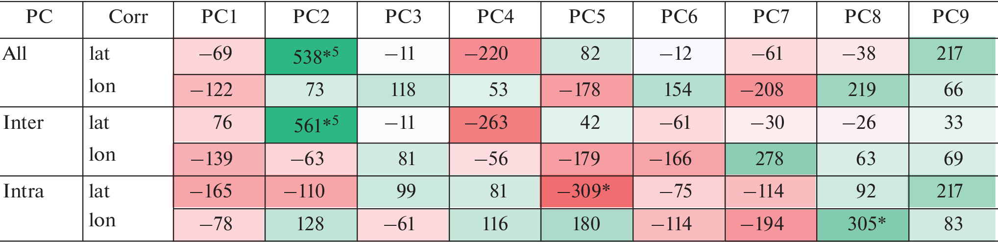 Currently, the search for manifestations of selection under the influence of the environment in molecular sequences is usually carried out within closely related species or at the intraspecific level. It is believed that at high taxonomic levels this is unpromising due to phylogenetic relationship. Cytochrome b amino acid sequences of 67 rodent and lagomorph species with known geographic coordinates were digitized using the AAindex database. Based on more than 200 thousand features, the main components were obtained. A well-known statistical method, which has not previously been used for such problems, was used, which makes it possible to orthogonally decompose multidimensional variability into intra- and intertaxon variability and analyze them separately. Subfamily level selected. For the second principal component (17.05% of intertaxon variability), a correlation with latitude was found (r = 0.561; n = 67; p < E–5). The clear division into two groups revealed by the first principal component (39.48% of intertaxon variability), which does not coincide with the taxonomic one, indicates a possible physicochemical underlying reason for the differences between them. This requires further research.