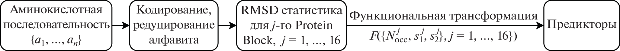 Recently, the prediction of protein structure and function from its sequence underwent a rapid increase in performance. It is primarily due to the application of machine learning methods, many of which rely on the predictive features supplied to them. It is thus crucial to retrieve the information encoded in the amino acid sequence of a protein. Here, we propose a method to generate a set of complex yet interpretable predictors, which aids in revealing factors that influence protein conformation. The proposed method allows us to generate predictive features and test them for significance in two scenarios: for a general description of the protein structures and functions, as well as for highly specific predictive tasks. Having generated an exhaustive set of predictors, we narrow it down to a smaller curated set of informative features using feature selection methods, which increases the performance of subsequent predictive modelling. We illustrate the effectiveness of the proposed methodology by applying it in the context of local protein structure prediction, where the rate of correct prediction for DSSP Q3 (three-class classification) is 81.3%. The method is implemented in C++ for command line use and can be run on any operating system. The source code is released on GitHub: https://github.com/Milchevskiy/protein-encoding-projects.