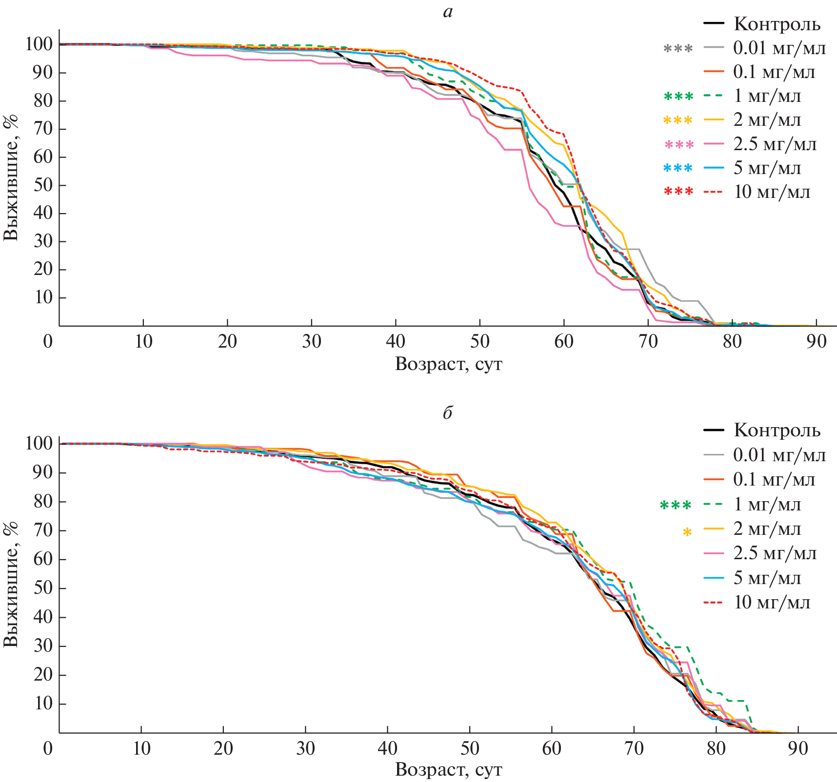 - Golubev D., Zemskaya N., Shevchenko O., Shaposhnikov M., Kukuman D., Patov S., Punegov V., Moskalev A. (2022) Honeysuckle extract (Lonicera pallasii L.) exerts antioxidant properties and extends the lifespan and healthspan of Drosophila melanogaster. Biogerontology. 23, 215‒235.