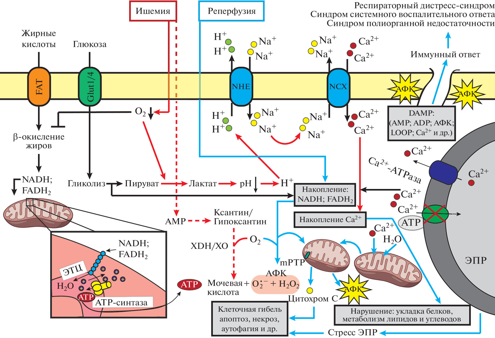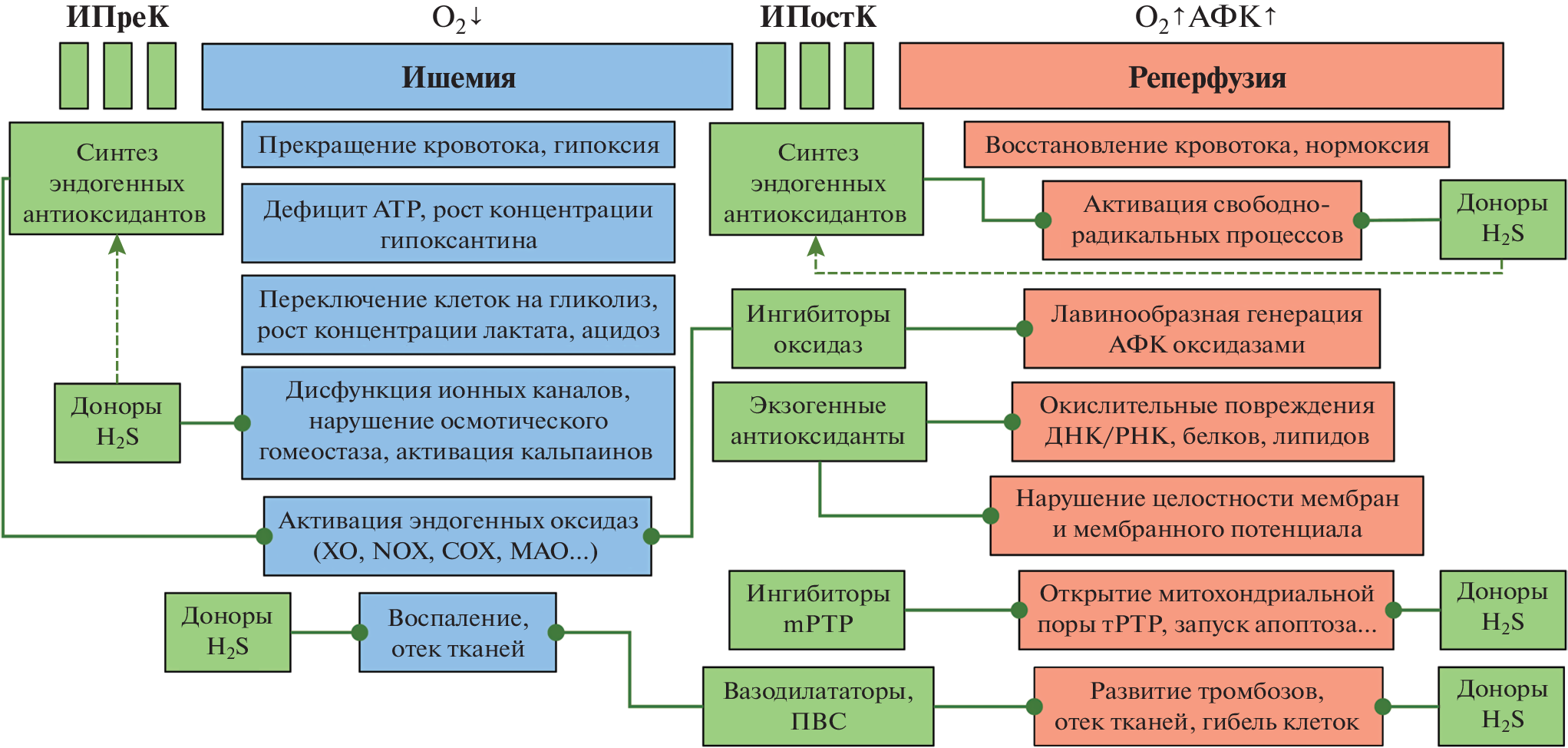 Ischemia-reperfusion is a cascade of complex and interrelated pathological processes underlying many human diseases, including such socially significant as stroke, myocardial infarction, acute renal failure, etc. The present review considers modern ideas about the main biochemical and signal-regulatory processes occurring in the cell under conditions of ischemia-reperfusion. Both generally accepted and newly developed ways of ischemia-reperfusion lesion correction aimed at different chains of this pathological process are considered.