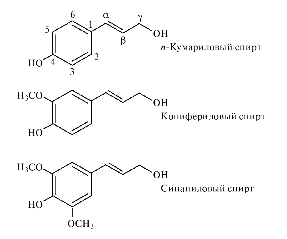 Рис. 2. Основные структурные звенья лигнина.