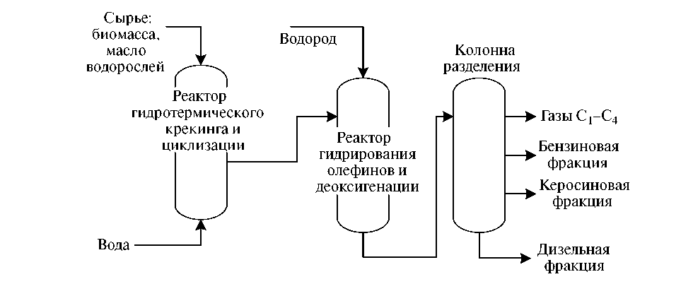 Лидером в разработке и реализации процесса HDCJ является компания Licella (Австралия), которая построила и эксплуатирует с 2008 г. одну пилотную и с 2011–2013 гг. две демонстрационные установки в Сиднее (Австралия). При переработке 50 тыс. т/год сухой биомассы по технологии компании Licella может быть получено около 15–16 тыс. т/год бионефти. В процессе применяют реакторы оригинальной конструкции Cat-HTR, которые можно использовать не только для переработки лигноцеллюлозных отходов, биомассы, но и для переработки пластиковых отходов19. Топливо, получаемое из лигноцеллюлозной биомассы (HDCJ), до настоящего времени не сертифицировано для применения.
