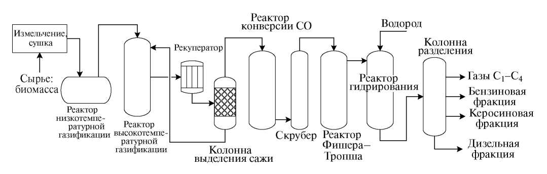 Рис. 8. Схема конверсии биомассы в авиационное топливо по технологии BioTfuels.