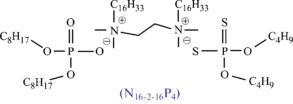 С точки зрения авторов этой статьи, более перспективными для применения в качестве смазочных материалов и присадок к ним являются дикатионные ИЖ. Преимущество их применения обусловлено следующими факторами: возможностью синтеза соединений с длинными алкильными заместителями, что должно повышать растворимость данных соединений в неполярных маслах; возможностью синтеза ИЖ с разными анионами, что позволит повысить трибохимическую активность ИЖ.