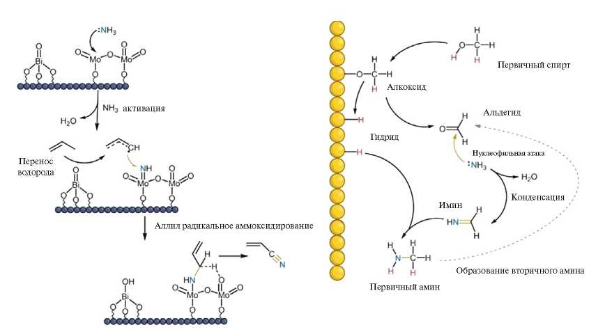 Рис. 4. Примеры путей образования связей C–N в гетерогенном катализе (адаптировано из [51]).