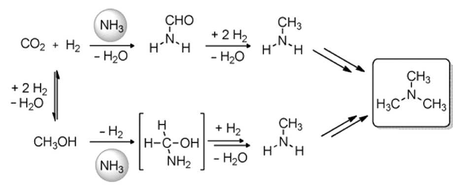- Gredig S.V., Koeppel R.A., Baiker A. Synthesis of methylamines from carbon dioxide and ammonia // J. Chem. Soc. Chem. Commun. 1995. № 1. P. 73–74. https://doi.org/10.1039/C39950000073