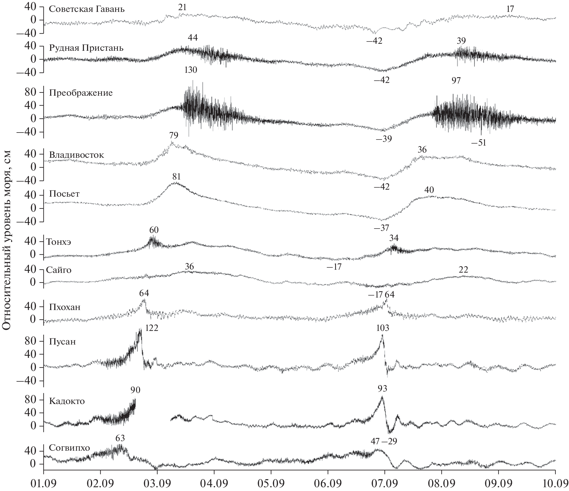 Extreme Sea Level Variations in the Sea of Japan Caused by the Passage of Typhoons Maysak and Haishen in September 2020