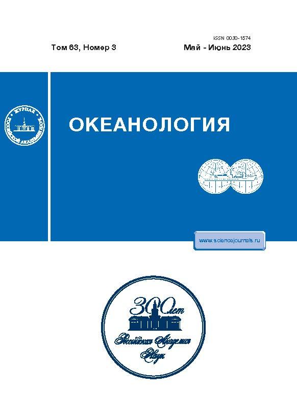 The distribution of water masses in August 2019 in the Chukchi Sea, and their hydrochemical features are i-nvestigated using shipboard data from the transarctic expedition onboard the R/V Professor Levanidov. The work was carried out in the southern shallow part of the sea and in the northern part of the sea outside the 70-meter isobath. Six main water masses were identified: Alaskan and Anadyr Coastal Water (ACW), Siberian Coastal Water (SCW), Melt Water (MW), Summer Bering Sea Water (BSW), Remnant Pacific Winter Water (RWW) and Atlantic Water (AW). Their features are described and analyzed. It was revealed that the water masses of the Chukchi Sea are characterized by a high spatial variability of hydrochemical parameters, especially the BSW, RWW and AW. In the southern part of the Chukchi Sea the presence of very high values of ammonium nitrogen in the bottom layer was noted (up to 12.6 µM). In august 2019, transformed AW, typically residing below 150 m, were observed at a depth of 117–137 meters, characterized by salinity values from 34.2 to 35.7, high content of mineral silicon (93–97 µM), low elevated values of apparent oxygen utilization (240–270 µM), and unusually low N* (a measure of the fixed nitrogen excess relative to phosphorus) values (down to −24.0 µM). At the same time, the AW observed at depths below 140 m did not have such hydrochemical features.