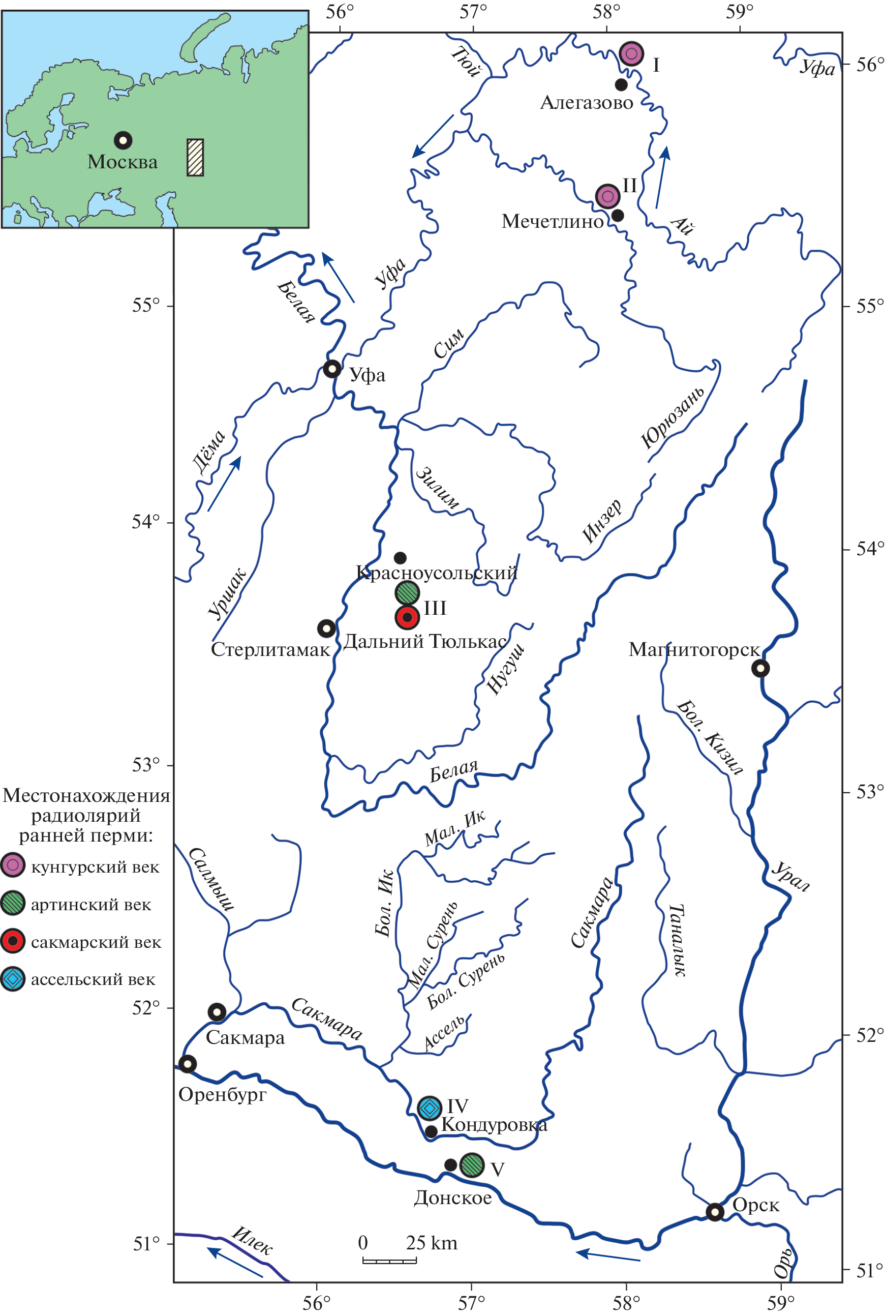 - Afanasieva M.S., Chernykh V.V., Sungatullina G.M et al. Radiolarians, conodonts, and palynomorphs from the Sakmarian–Artinskian boundary beds (Lower Permian) in the Dal’ny Tulkas section, South Urals, Russia // Paleontol. J. 2022. V. 56. № 9. Р. 975–1025.