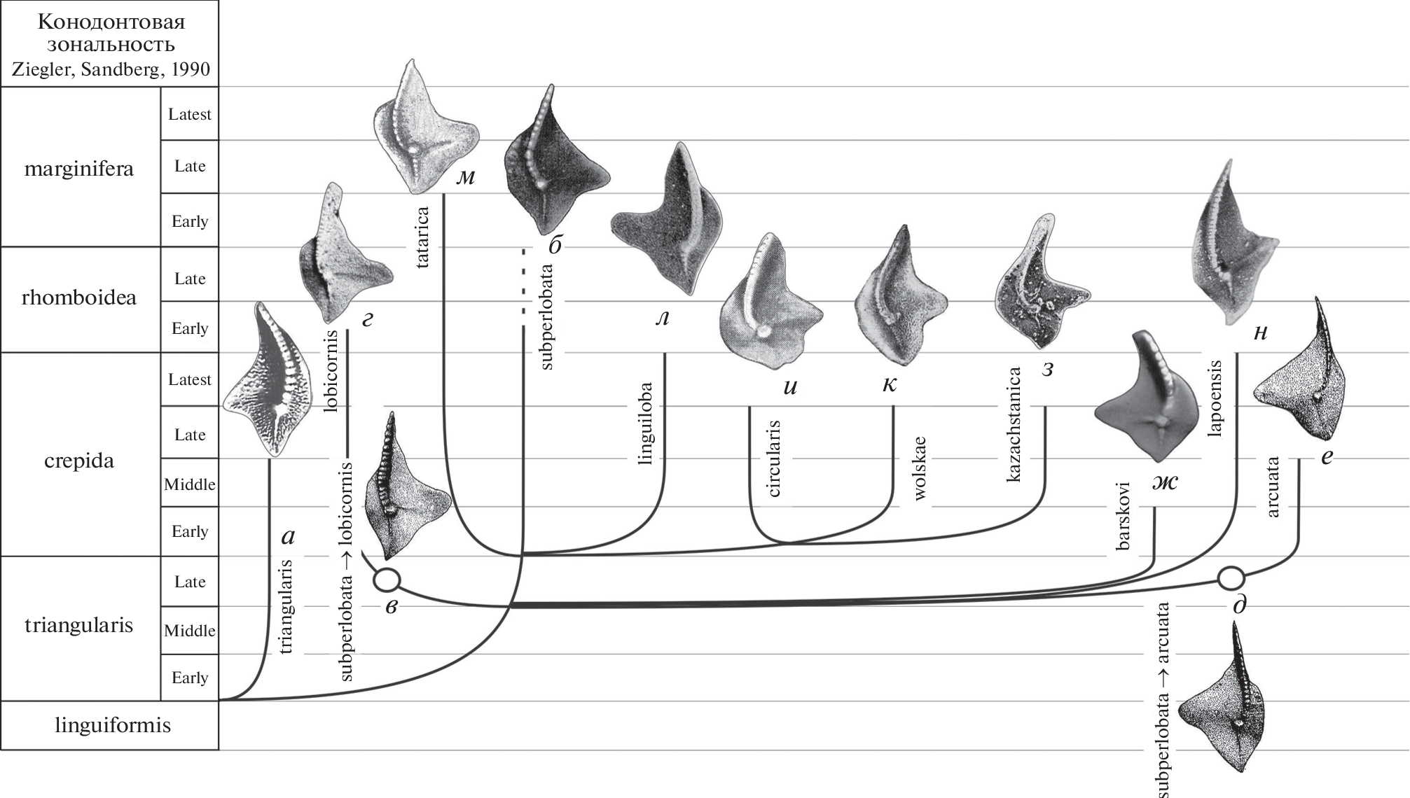 36. Ovnatanova N.S., Kononova L.I. Frasnian conodonts from Eastern Russian Platform // Paleontol. J. 2008. V. 42. № 10. P. 997–1166.