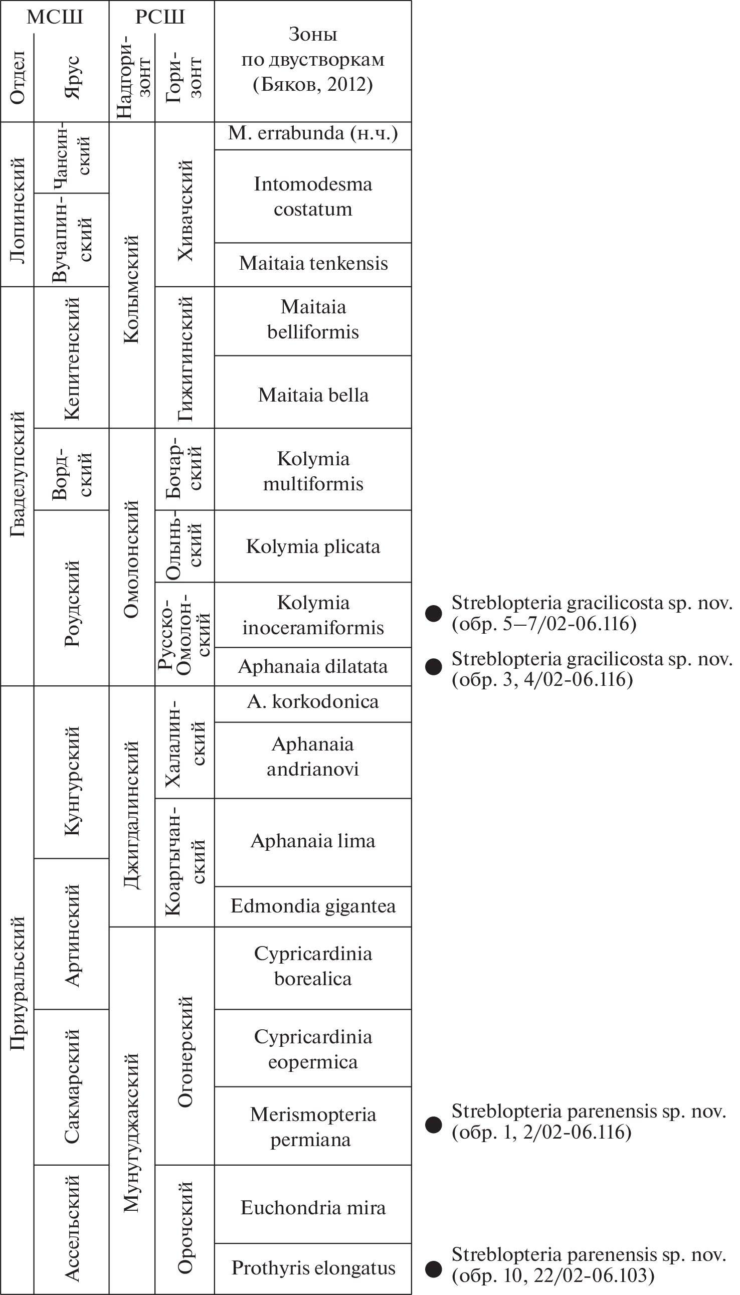 - Бяков А.С. Новая зональная схема пермских отложений Северо-Востока Азии по двустворчатым моллюскам. Статья 1. Зональное расчленение // Тихоокеан. геол. 2012. Т. 31. № 5. С. 13–40.