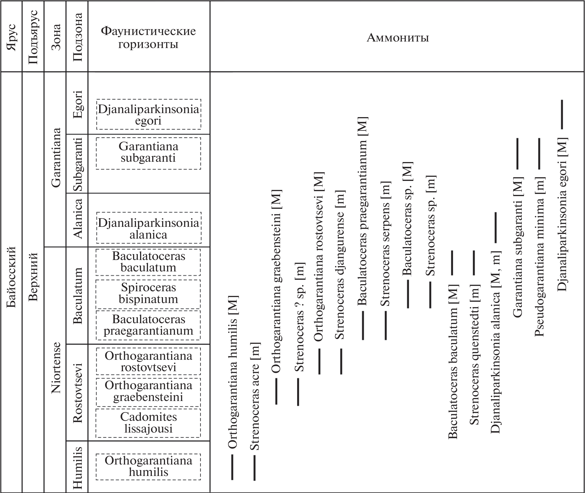 New finds of ammonites in the Upper Bajocian Garantiana garantiana Zone in the interfluve of the Kuban and Urup rivers (Karachay-Cherkessia) allow their definitions and the rank of infrazonal subdivisions to be clarified. Djanaliparkinsonia egori sp. nov. from the upper part of the Garantiana zone is described. The zone is three subzones (from bottom to top): Alanica, Subgaranti, and Egori; each subzone contains a faunal horizon of the same name. The data on systematic composition and stratigraphic distribution of species of the subfamily Garanianinae in the Upper Bajocian of the Kuban River basin are summarized, and index-species of the subzones (and faunal horizons) of the Garantiana Zone are illustrated.