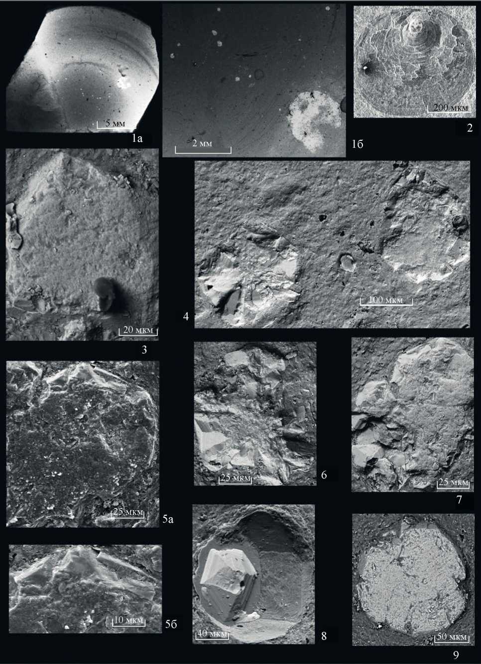 Брахиоподы, принадлежащие подтипу Linguliformea, известны в геологической летописи с самого основания кембрия. При жизни они обладали органофосфатной раковиной. После смерти в ходе фоссилизации органическая составляющая разрушалась или была преобразована (минерализована), и ископаемые раковины и створки лингулиформей, с которыми мы имеем дело, обычно сложены фосфатом кальция – апатитом. Потомки лингулиформей дожили до наших дней и во многом сохранили ряд черт морфологии и развития, свойственных предковым формам. У современной Lingula эмбриональное и личиночное развитие после оплодотворения проходит внутри яйца, из которого вылупляются уже по существу маленькие брахиоподки с двумя органическими створками и зачаточным лофофором, они начинают плавать и расти. Это ювенильная (или брефическая) планктотрофная стадия продолжается от нескольких дней до месяца, и только после оседания на дно у животного начинает откладываться минеральный скелет (Lüter, 2007). Отдельные ювенильные раковины с органическими покровами, как правило, в ископаемом состоянии не сохраняются. Присланный недавно материал из Новосибирска с керном скважины ХС-1, пробуренной на северо-западе Сибирской платформы, с глубины 1012–1013 м, позволил сделать удивительные наблюдения. В данной скважине на указанных глубинах распространены отложения шумнинской свиты (ботомский и тойонский ярусы нижнего кембрия), которые в этом регионе представлены серыми, желтыми, темно-серыми доломитами с тонкими линзовидными прослоями черных и темно-серых очень плотных битуминозных аргиллитов, на сколах сланцеватых. Шумнинская свита широко распространена на северо-западе Сибирской платформы. Наиболее полные ее разрезы известны по р. Сухариха и ее притоку р. Шумная. Мощность свиты там достигает 240 м. В скважине ХС-1 ее мощность около 25 м. По данным В.А. Даценко и др. (1968), Л.Н. Репиной (1972), В.А. Лучининой и др. (1997), породы шумнинской свиты содержат остатки карбонатных водорослей, археоциат, трилобитов, брахиопод, SSF. Накопление свиты происходило в сублиторальной части обширного пологого бассейна. Условия были благоприятные для развития разнообразной донной фауны. Небольшие линзовидные прослои черных битуминозных аргиллитов могли образоваться во время штормов в ходе перемещения тонких мутьевых потоков, которые время от времени заносили поселения придонных организмов, в т.ч. и брахиопод. Последние оказывались в низкокислородной среде и быстро погибали, их раковины частично разрушались, частично фоссилизировались. Среди аргиллитов на плоскостях напластования встречаются отпечатки внутренней и внешней поверхностей створок, а иногда сохранившиеся фрагменты створок от лингулид и акротретид, среди которых определены Eoobolus sp., Homotreta salancaniensis (Pelman), Botsphordia caelata (Hall). Эти находки не противоречат ранее определенному возрасту отложений как верхняя половина нижнего кембрия. На поверхности напластования одного из полученных образцов площадью примерно 2 × 3 см встречены плохо сохранившийся отпечаток створки, вероятно, от Eoobolus ?, и недалеко от него на расстоянии 2–10 мм разбросано около двух десятков очень мелких отпечатков или слепков с размерами 220–200 × 20–60 мкм (табл. VI, фиг. 1а, б). Просмотр их с помощью СЭМ показал, что это, вероятно, створки эмбриональных или брефических стадий брахиопод, которые были захор