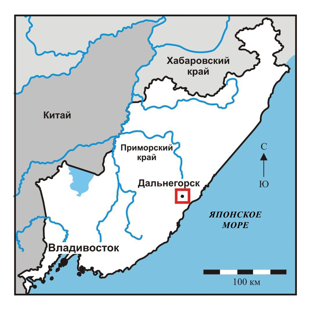 Рис 1. Схема расположения Дальнегорских органогенных известняков.
