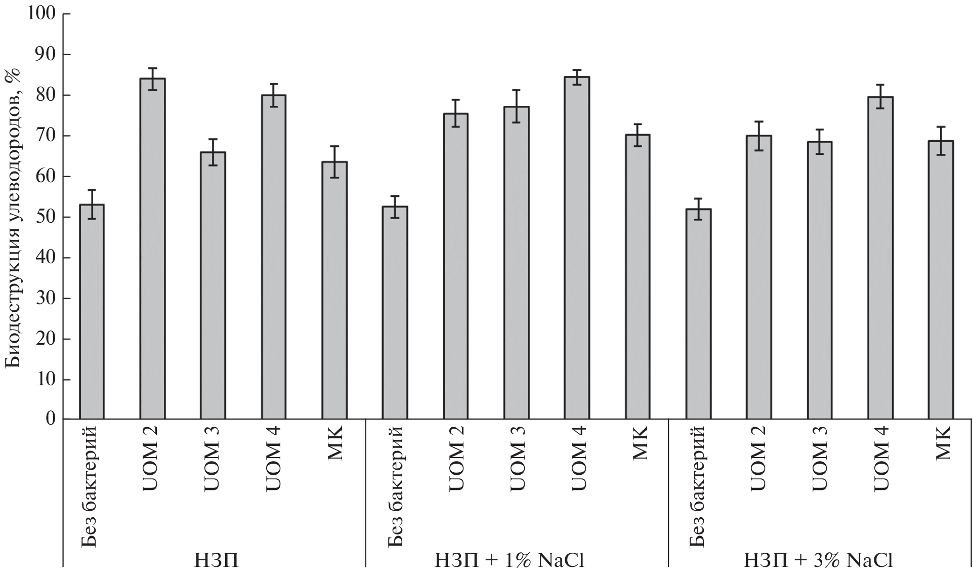 - Qin X., Tang J.C., Li D.S., Zhang Q.M. Effect of salinity on the bioremediation of petroleum hydrocarbons in a saline-alkaline soil // Lett. Appl. Microbiol. 2012. V. 55. P. 210–217. https://doi.org/10.1111/j.1472-765x.2012.03280.x