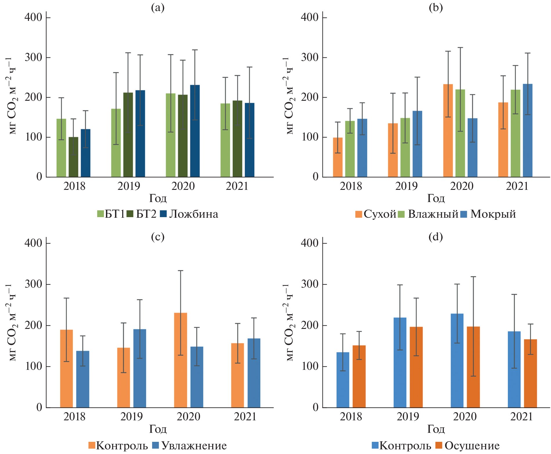 Влияние влажности на эмиссию СО2 из почв бугристых торфяников севера Западной Сибири