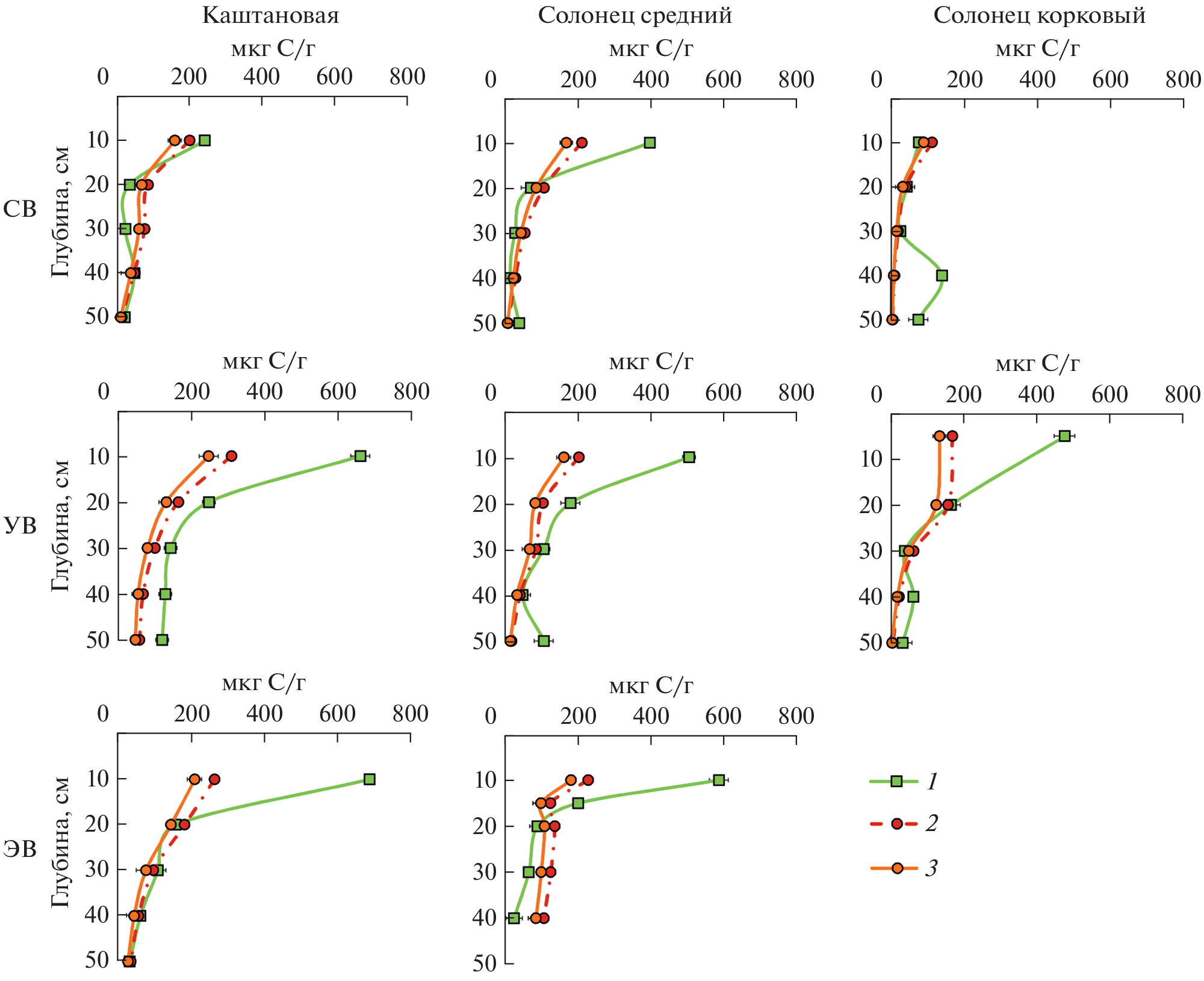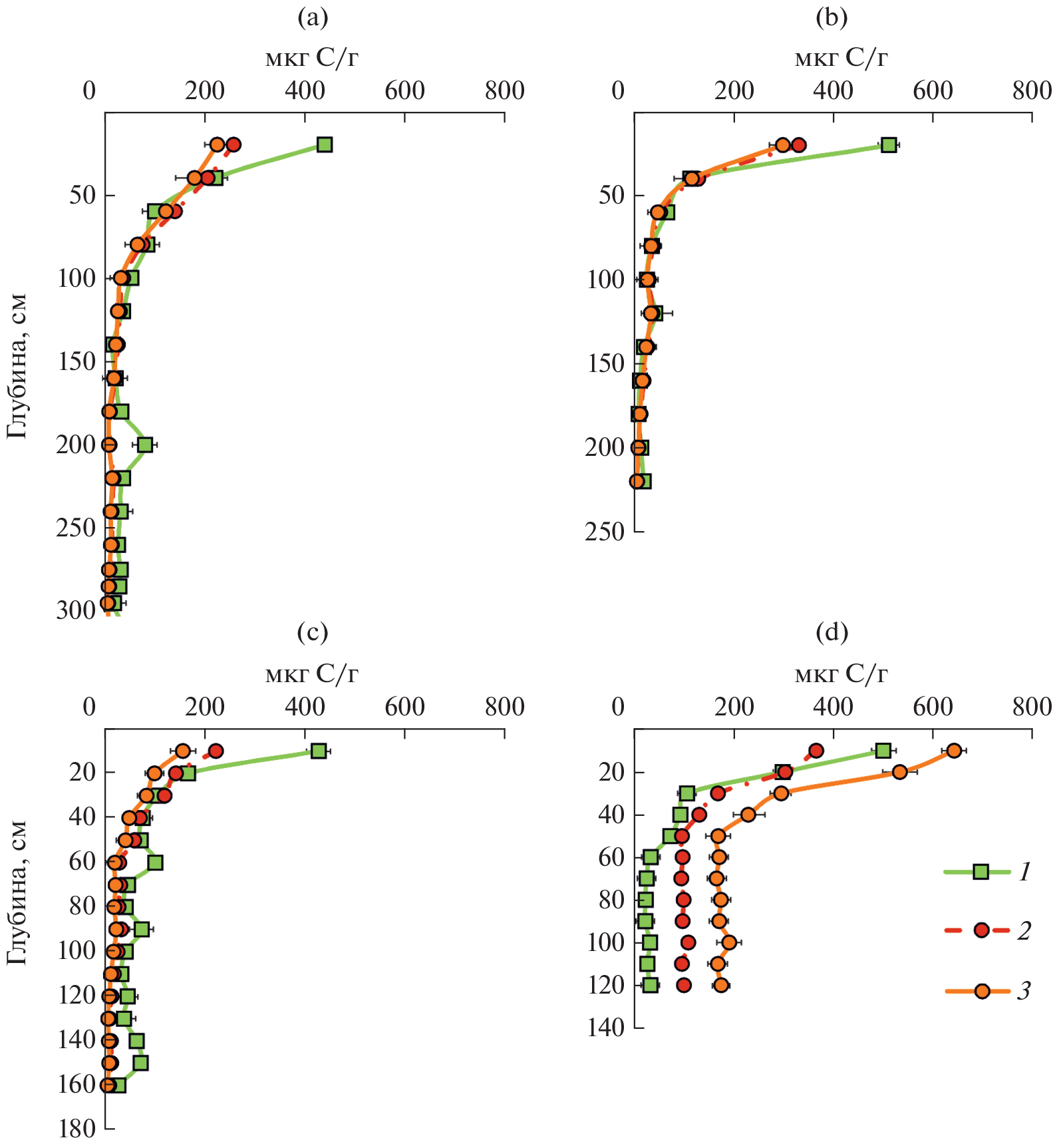 - Mueller T., Joergensen R.G., Meyer B. Estimation of soil microbial biomass C in the presence of living roots by fumigation-extraction // Soil Biol. Biochem. 1992. V. 24. P. 179–181. https://doi.org/10.1016/0038-0717(92)90275-3