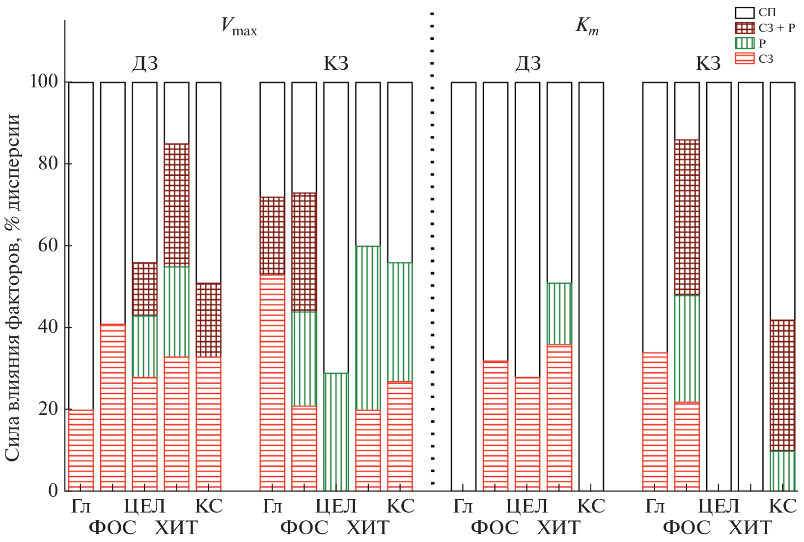 - Zhang Y., Chen L., Wu Z., Sun C. Kinetic parameters of soil β-glucosidase response to environmental temperature and moisture regimes // Revista Brasileira De Ciencia Do Solo. 2011. V. 35. P. 1285–1291.