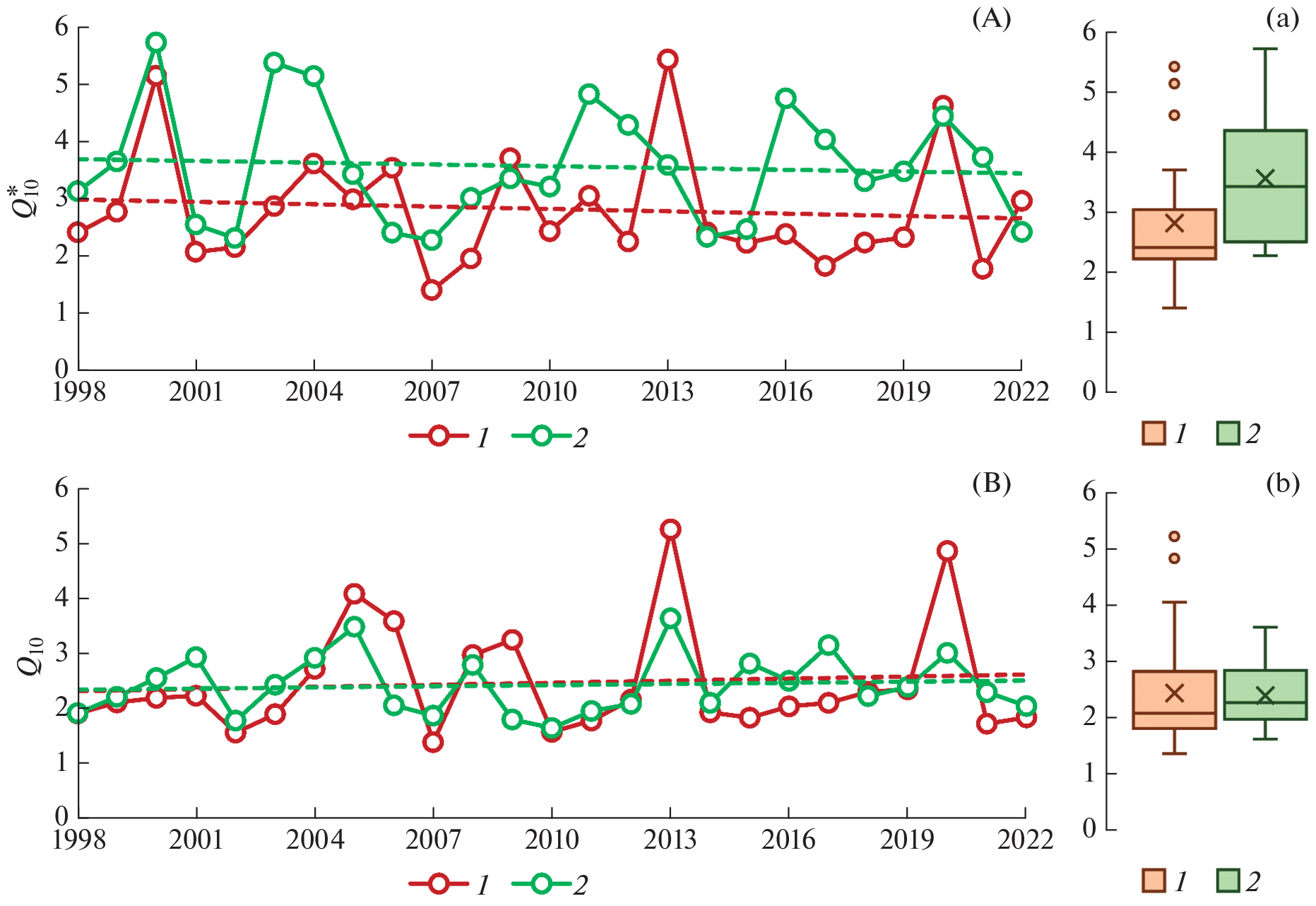 - Chen B., Liu S., Ge J., Chu J. Annual and seasonal variations of Q10 soil respiration in the sub-alpine forests of the Eastern Qinghai-Tibet Plateau, China // Soil Biol. Biochem. 2010. V. 10. P. 1735–1742. https://doi.org/10.1016/j.soilbio.2010.06.010