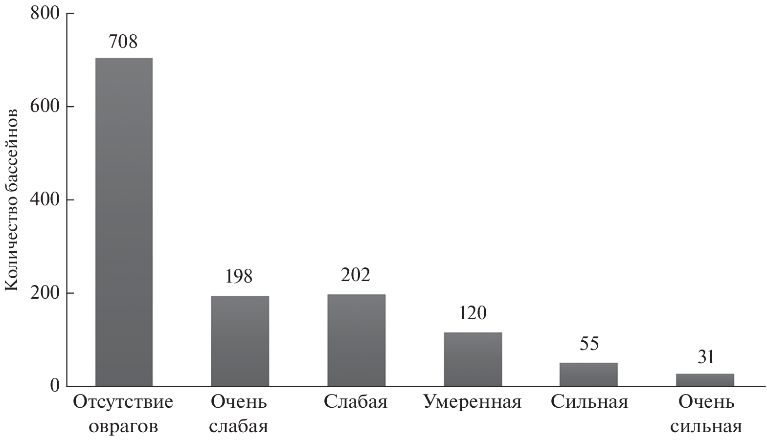 The article presents a new scheme of zoning of modern gully erosion in a large region of the Russian Federation. Automated landscape zoning by means of artificial neural networks was carried out in order to determine the natural and anthropogenic conditions for the development of the gully network. Erosion zoning was implemented on the basis of large-scale geoinformation mapping of gullies by the method of visual interpretation of high- and ultra-high-resolution satellite images for 2017–2021. The basins of small rivers (1314 in total) with an average area of 91 km2 are taken as operational-territorial units. 22688 gullies (including their holes) were identified in the study area, the average length of which is 65 m, and the total length of the gully network is about 1500 km. The density of the gully network averages 12 m/km2, reaching a maximum of 301 m/km2. The density of gully dissection is used as an indicator for the zoning of gully erosion, this indicator indirectly reflects the intensity of gully formation in geo-space. The dominant (84% of basins) are areas either with no gully dissection or having weak or very weak gully erosion. The main reasons for the widespread damping of gully erosion are related to changes in land use and in the climate system, as well as an evolutionary factor – the transition of many gully forms to the balka stage of development.