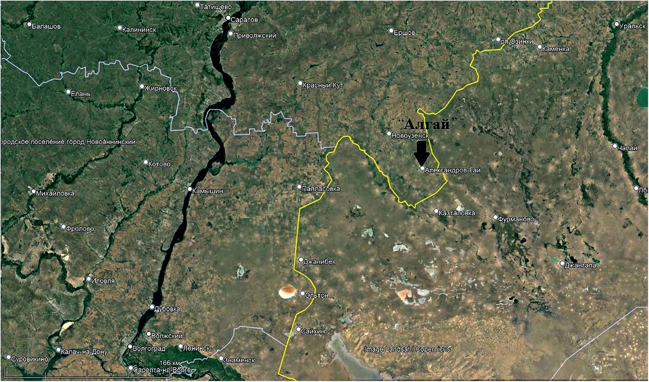 Почвенные исследования для реконструкции условий меняющейся среды в голоцене проводили в археологическом раскопе поселения “Алгай”, возраст которого около 8 тыс. лет, т. е. оно существовало и развивалось практически весь голоцен. Памятник находится в 1.5 км к северу от с. Александров-Гай Саратовской области на одном из мысов правого коренного берега р. Большой Узень (рис. 1).