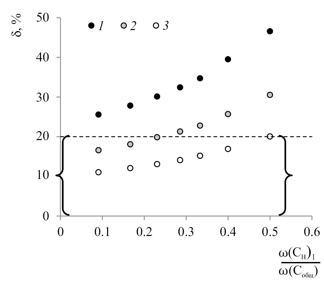 Таблица 1. Расчетные значения относительной погрешности (d) измерения массовой доли (w) углерода органических соединений в карбонатных почвах. Составлено по [87]