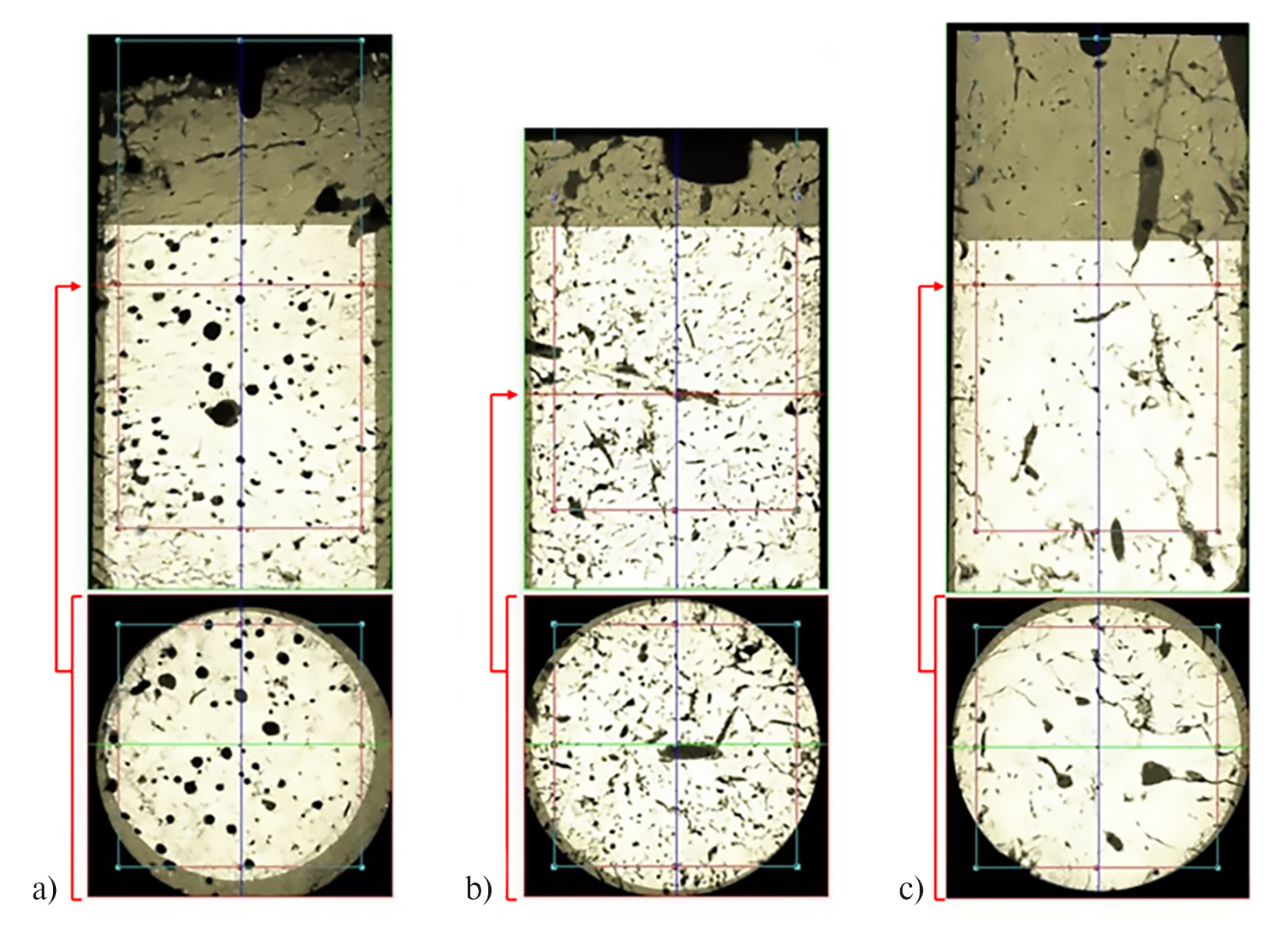Сложность заключается в том, что сравнить данные пропитанного и нативного образцов при микроскопических исследованиях невозможно, так как образцы для оптической микроскопии не могут существовать без предварительной обработки, а именно закрепления их структуры смолами. Как следствие, приходится использовать ряд дополнительных измерений и далее экстраполировать их результат на шлифы. Чтобы охватить все размерности [21] порового пространства, возможно задействовать методы для каждого диапазона размерностей, а именно: малоугловое рентгеновское рассеяние (МУРР) и КТ.