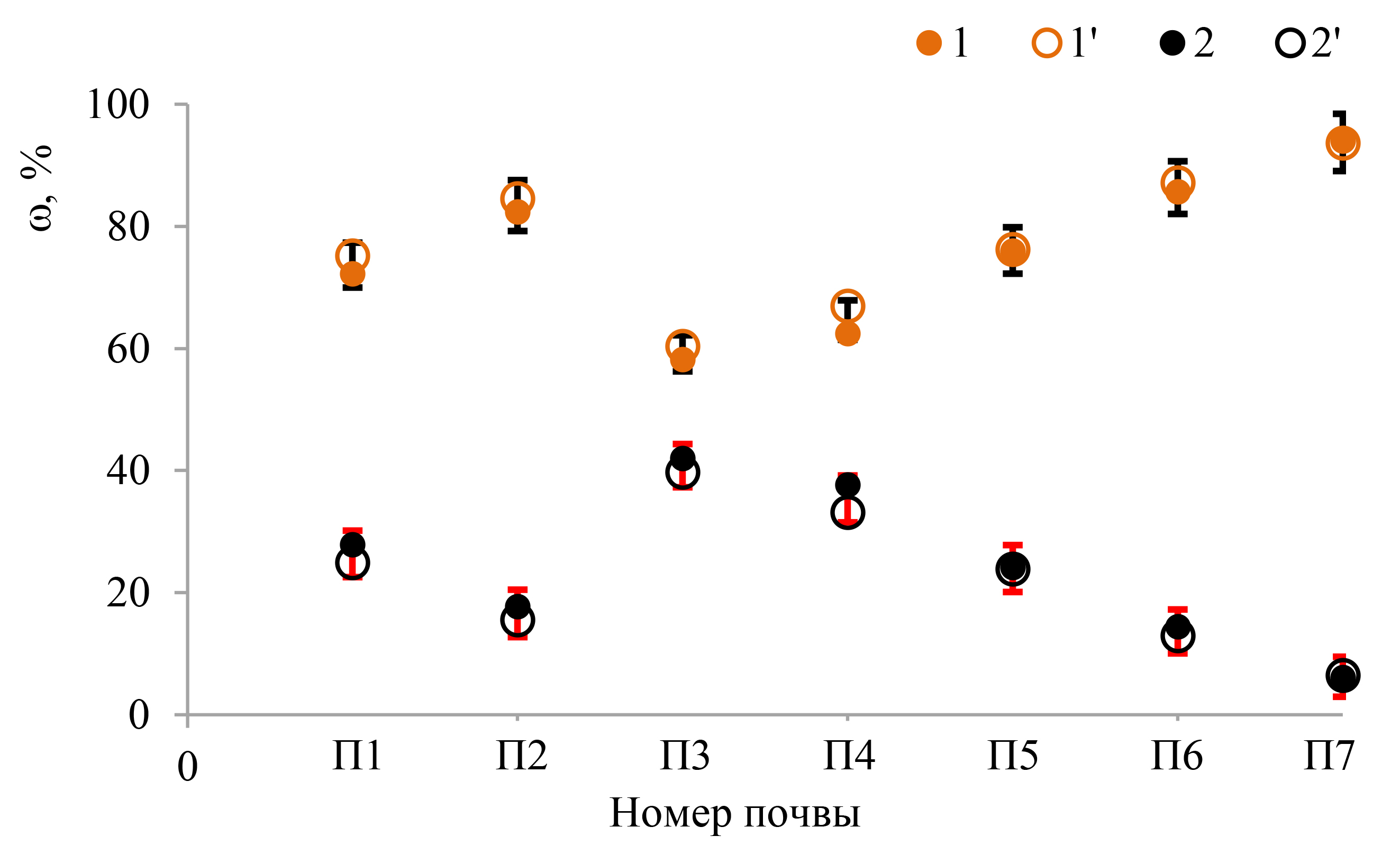 В нормативных документах, регламентирующих проведение исследований ГС почвы по данной методике, отсутствуют показатели качества измерения ωn различных фракций [11, 27]. Это может ставить под сомнение значимость выводов об изменении ГС почв во времени и пространстве.