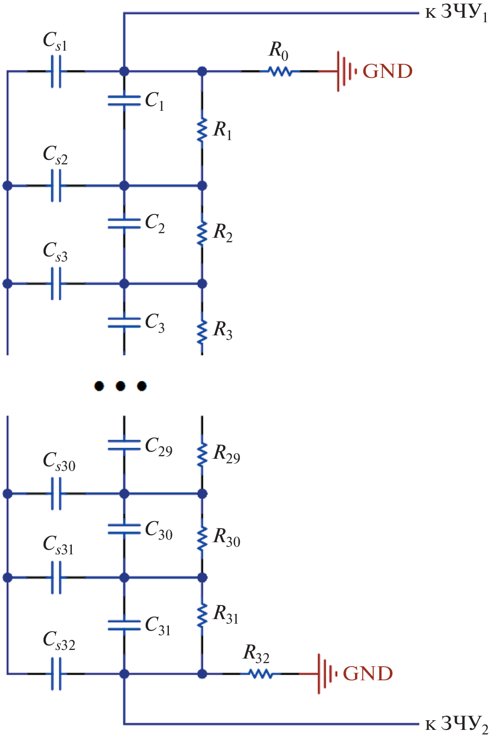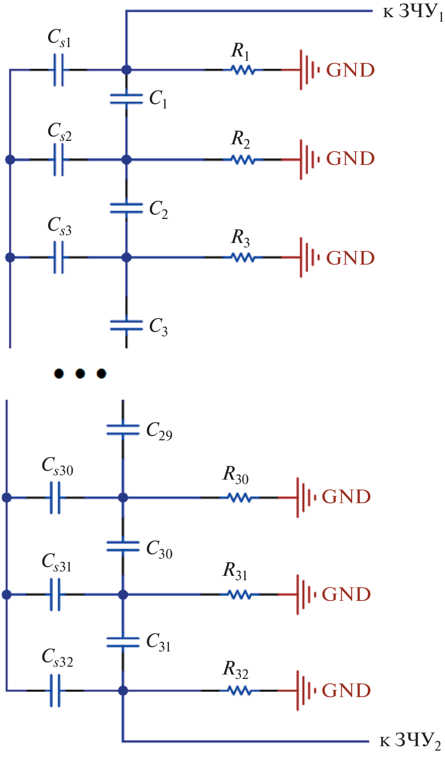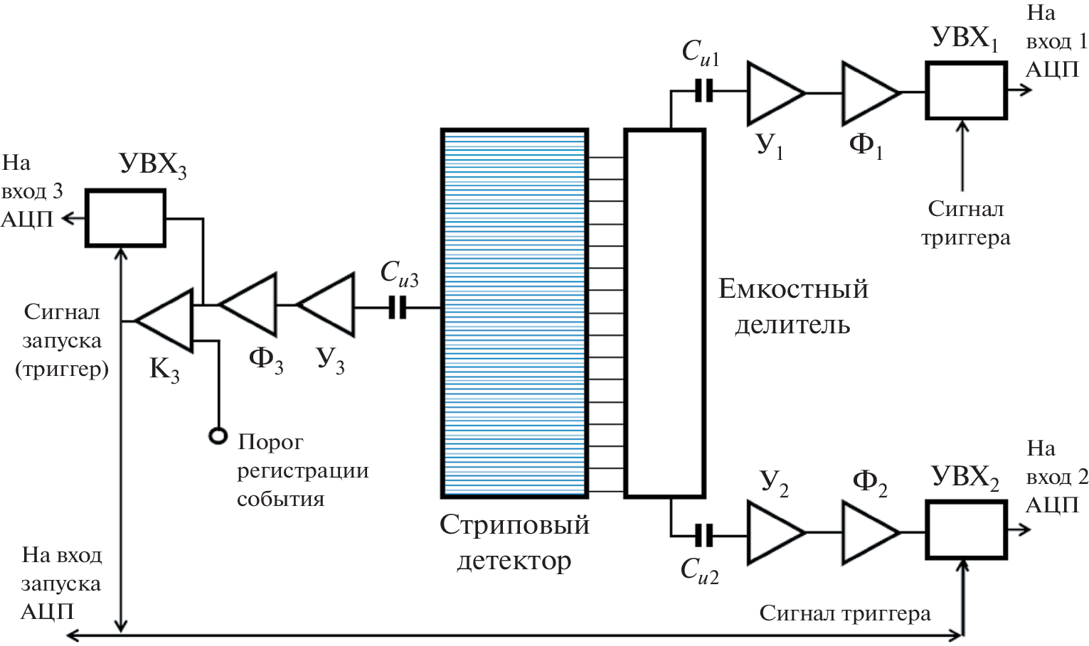 The article considers an electronic circuit that, in some cases, makes it possible to significantly reduce the number of readout channels in a silicon coordinate detector based on a matrix of p–i–n structures (strip- or pad-type) without a loss in the coordinate measurement accuracy. The electronic circuit is a chain of external capacitors that connect the structures of the detector. When one of the structures is hit, a signal propagates along the chain of capacitors of the capacitive divider to the nearest readout channels and it is possible to determine the original number of the hit structure by the change in the signal value. The proposed circuit was mathematically simulated for typical parameters of the detector and readout electronics. The mathematical model allowed us to optimize the circuit parameters depending on the parameters of the detector and readout electronics. The simulation results are confirmed by experimental measurements on several prototypes of the device. It is shown that, in certain application cases, when a detector signal is high enough, e.g., when nuclei with Z > 6 are registered, one can achieve, by using standard low-noise operational amplifiers, the accurate recovery of the number of the hit structure in the chain consisting of at least 30 structures by reading only two extreme structures.