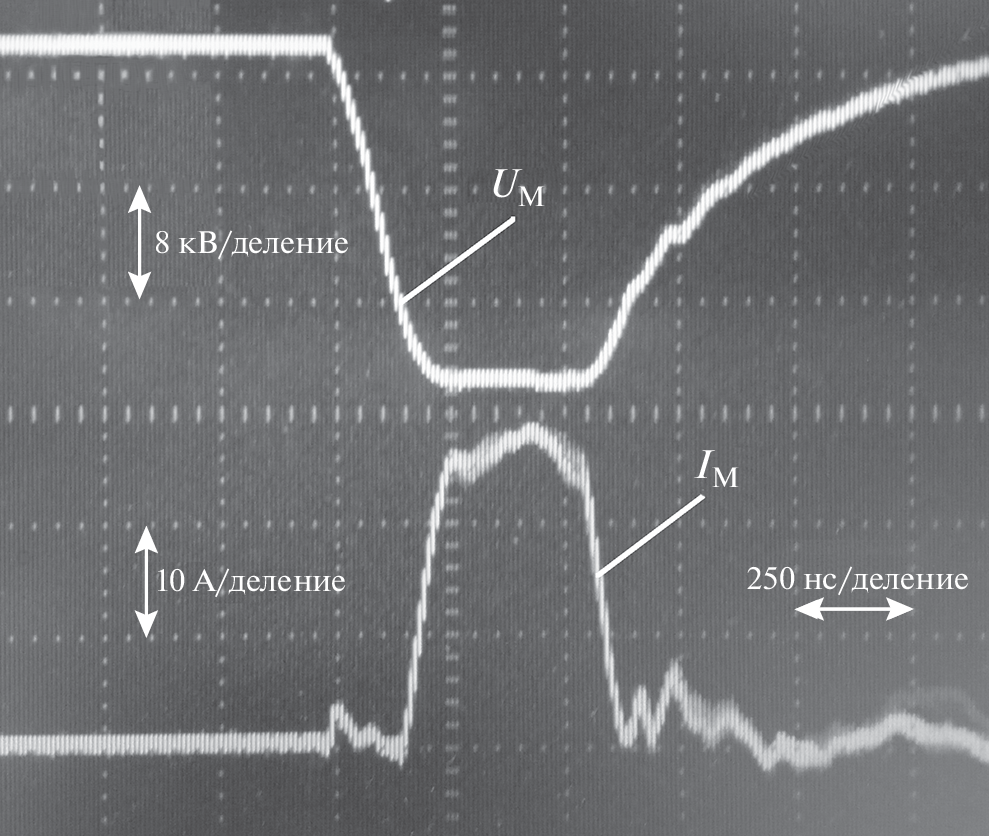 A pulsed magnetron system generating high-energy microwave pulses with a frequency of 400 Hz and an average power of 0.5 kW is described. To generate a magnetron current pulse, a circuit with 12 identical transistor modules with an operating voltage of 800 V, which are connected in series to the primary winding of a high-voltage pulse transformer with a transformation ratio of 3.5, is used. Thus, a voltage pulse with an amplitude of up to 26 kV and a 25-A current with an adjustable duration of 100–500 ns is formed. Experimental data of the system operation into the pulsed microwave magnetron and an equivalent load are presented
