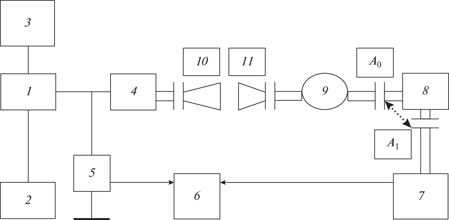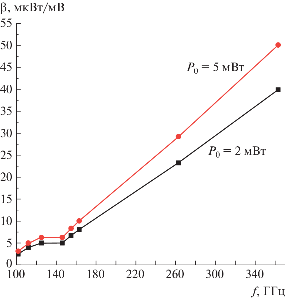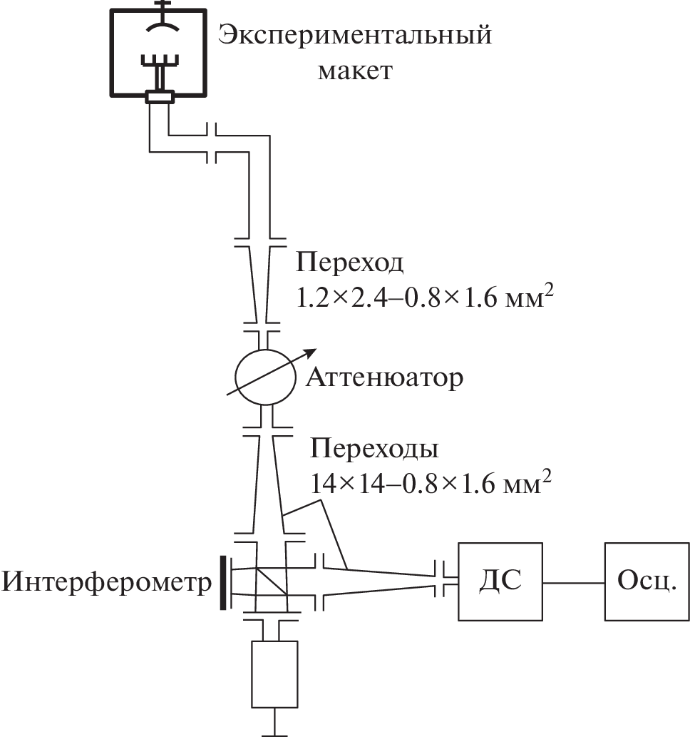 A method for evaluating the generation power of orotron experimental models with a two-row periodic structure (TRPS), which operate with 2 × 10–6-s duration pulses and a 0.02-s repetition period in the frequency range of 180–400 GHz, is described. To realize this method, a setup has been created for measuring the attenuation of the microwave path in a wide frequency interval (180–400 GHz) based on ОV-66 (180–260 GHz) and ОV-65 (260–360 GHz) backward-wave tubes (BWOs), which are not packed in a magnet focusing system, and the possibility of their operation in a pulse power-supply regime with a high off-duty factor is shown.