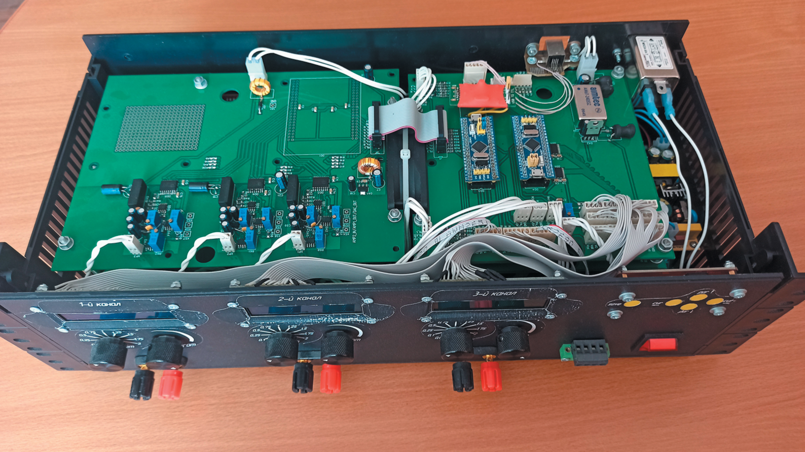 The results from the development of a three-channel arbitrary waveform generator with the function of a programmable power supply for setting up and debugging automatic control system boards for converter devices that require synchronization with the network are presented. The features of the device are the ability to simulate a three-phase distorted network to check and adjust the synchronization of control boards and the presence of galvanic isolation between three channels, which allows for using the generator as a power source for three-phase circuits. The generator provides the formation of output signals for each of the channels in the voltage range ±25 V with a maximum current of up to 2 A. The frequency range of alternating signals of the generator is 0.01–10 kHz. Currently, the generator is used at PAO Elektrovypryamitel to simulate dips, network distortions, and phase imbalances and to tune phase-locked loop systems and analog and digital filters.