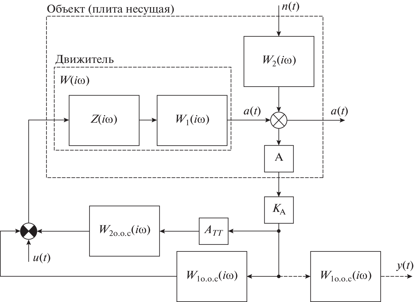 The dynamic characteristics of active vibration protection devices, consisting of a carrier plate (mounted on elastic supports), a symmetrical group of accelerometers, service-propulsion devices, and electrical circuits that separately control six vibration modes of the plate, are studied. The system is characterized by a phase reduction of 180° in the field of mechanical resonance of the slab and the same phase decrease caused by the electromechanical resonance of the service propulsors. In order to ensure that phase limitations do not reduce the efficiency of the device (the width of the active frequency range, the transmission coefficient of vibrations), two-loop control circuits have been developed that suppress the resonance of the carrier plate. Such devices achieve the following parameters: noise transmission coefficient ≈–60 dB, active frequency range 0.2–400 Hz for terrestrial laboratory/shop applications and 0.02–200 Hz for spacecraft applications.