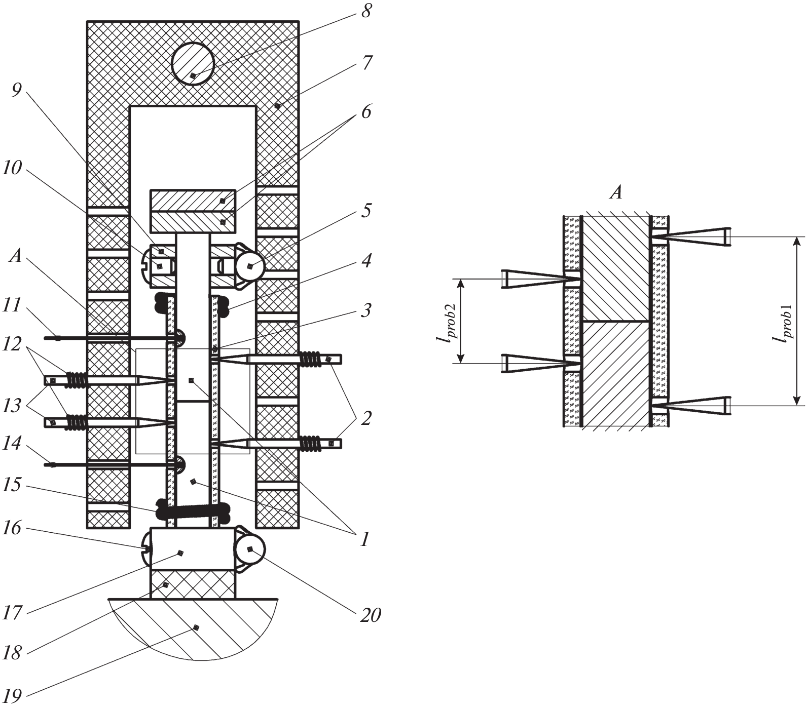 A setup for determining the contact electrical resistance measured using two surface point potential probes installed at the same distance from the contact surface is described. The total number of paired probes located at different distances from the contact surface is four. The reference temperature range is 380–1500 K. Measurements can be performed in vacuum and in air. The setup allows one to investigate the contact resistance at a direct current, which may vary from 20 to 120 A. The first test experiments have shown that changing the current polarity does not affect the current–voltage characteristic measured on a monolithic sample or on a sample with one fixed contact surface.