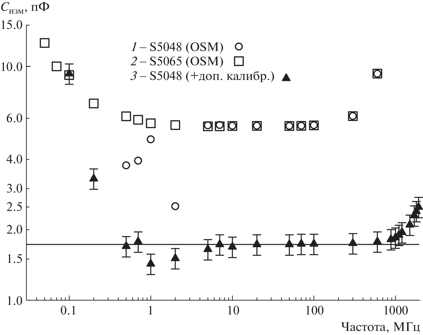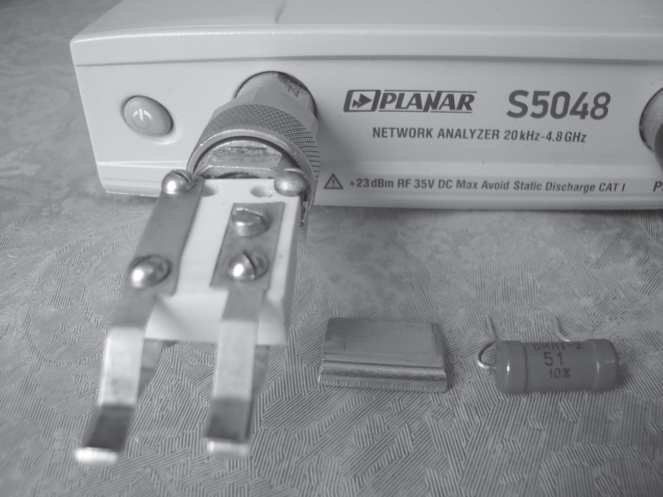 A simple and effective technique for express diagnostics of materials, which allows for the most efficient preparation of samples, the actual measurements, and obtaining data on material parameters, in particular, on the dispersion of the permittivity, is proposed. An express method for impedance spectroscopy of small samples at frequencies from 20 kHz to 1 GHz has been developed on the basis of a vector network analyzer using a conical coaxial measuring cell and adapters for connecting two-pole objects to the coaxial input of the device. The measuring cell is designed for disk samples with a diameter of up to 6 mm with a maximum volume of up to 0.1 cm3 as well as for samples in the form of rectangular plates that can be inscribed in a circle of the same diameter. Adapters also make it possible to connect two-terminal networks in the form of concentrated hinged or surface-mounted elements. In contrast to measurements in a coaxial path, the proposed technique does not require an accurate connecting transverse dimension, which allows for prompt sample preparation. The issues of determining the frequency range in which the measurement error does not exceed the allowable value are considered. A method is proposed for increasing the upper limit of the operating frequency of the measuring cell with the test sample using additional calibration. The developed program for controlling the processes of standard and additional calibration and the process of measurements in a certain frequency range, at which the measurement error does not exceed the permissible value, makes it possible to obtain the values of resistance, capacitance, inductance, and other electrical characteristics of the measuring cell with the sample under study within a few seconds.