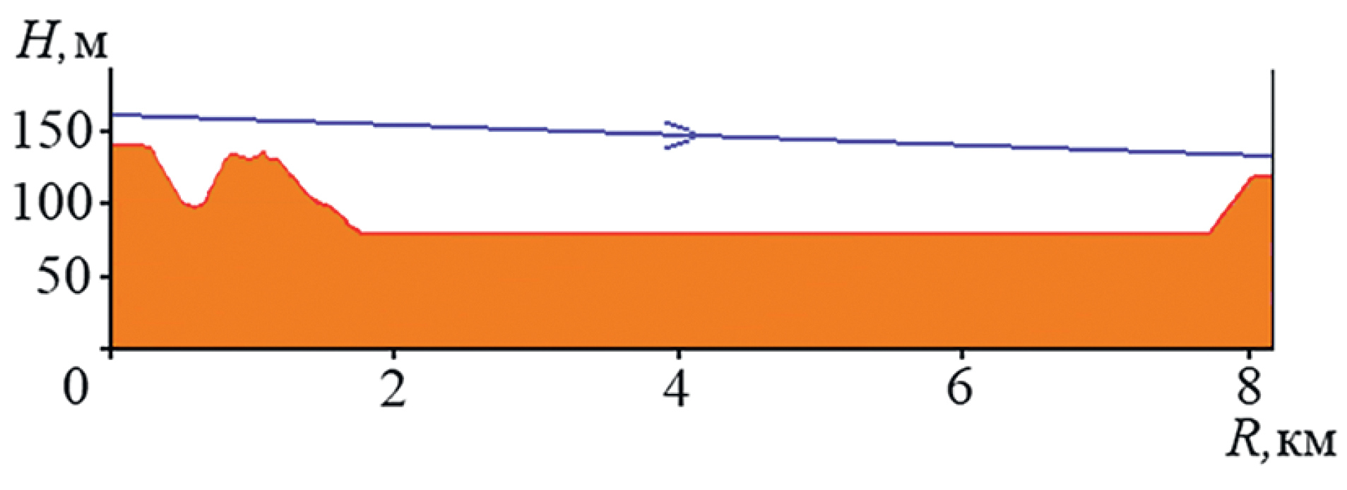 Рис. 5. Профиль трассы распространения радиоволн.