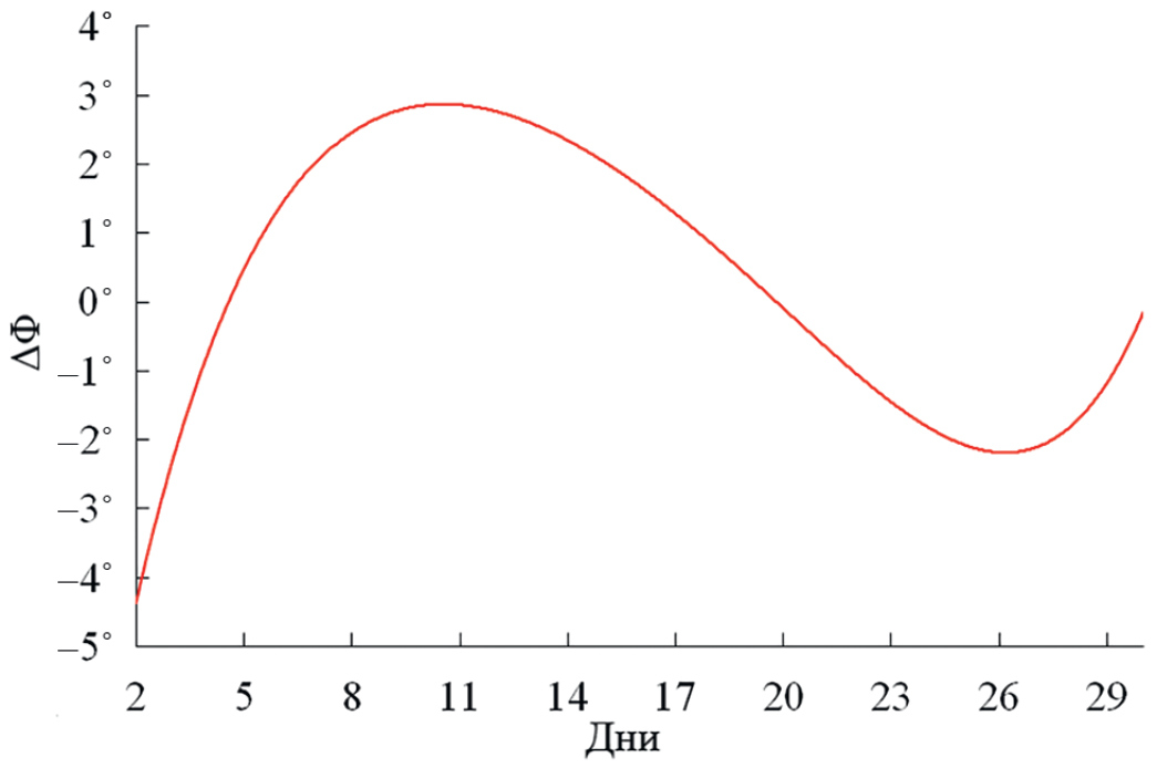На рис. 11 приведена экспериментальная зависимость средних значений дифференциального фазового сдвига за весь период измерений. Видим, что средние значения разности фаз принятых ортогонально-поляризованных сигналов изменялись в пределах от -5° до +3°. Анализ зависимости подтверждает наличие анизотропии в среде распространения за весь период измерений, за исключением только одного дня - 20 января, когда среда распространения была близка к изотропной, так как в этот день наблюдались следующие параметры: K1 = K2 = 1 и ΔΦ=0° MathType@MTEF@5@5@+= feaahGart1ev3aaatCvAUfeBSjuyZL2yd9gzLbvyNv2Caerbov2D09 MBdbqedmvETj2BSbqefm0B1jxALjhiov2DaerbuLwBLnhiov2DGi1B TfMBaebbnrfifHhDYfgasaacH8Xrpu0dbbf9q8WrFfeuY=Hhbbf9v8 qqaqFr0xc9pk0xbba9q8WqFL0dir=xcvk9FHe9v8qqaq=dir=f0=yq aqVeLsFr0=vr0=vr0db8meaabaqaciaacaGaaeqabaWaaqaafaaake aacqqHuoarcqqHMoGrcqGH9aqpcaaIWaGaeyiSaalaaa@412C@ .