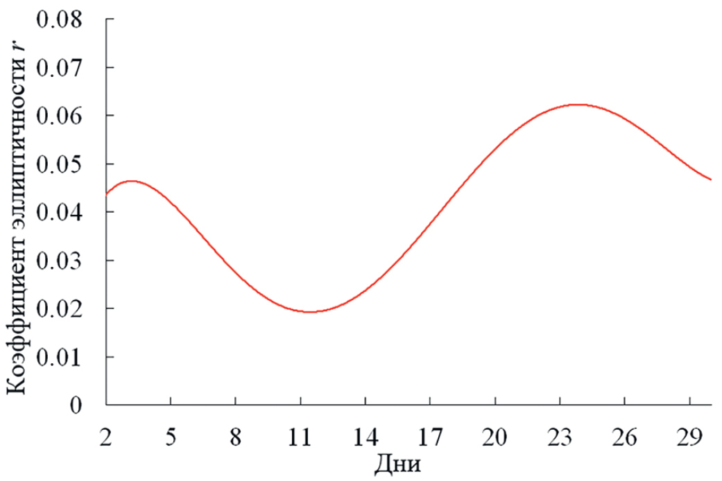 Рис. 14. Средние значения коэффициента эллиптичности r за весь период измерений.