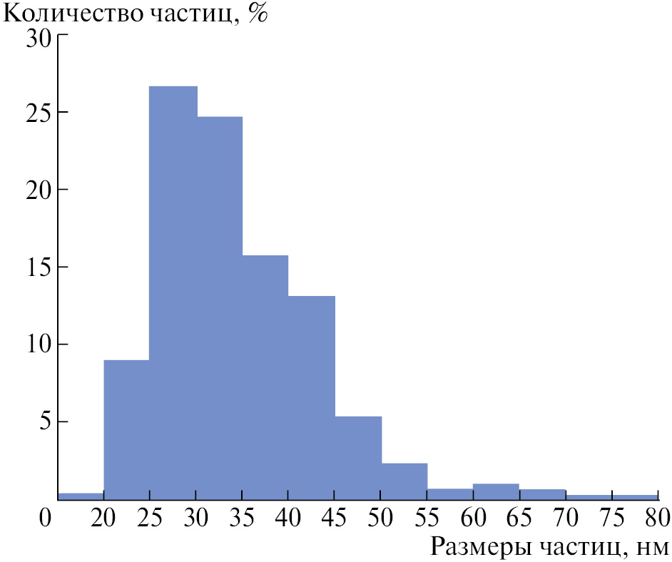При исследовании 20 проб, взятых из разных заборных пробирок в рассмотренном режиме работы устройства, размер полученных частиц кремния находился в пределах 20–100 нм. Этот диапазон практически не изменялся в условиях, когда частота f и напряжение UC задавались так, чтобы не менялась входная мощность устройства. Полученный результат можно объяснить тем, что используемый очень малый напор воды позволял переместить к выходу разрядной камеры наночастицы с размером только менее 100 нм. Более крупные частицы оседали на дно РК.