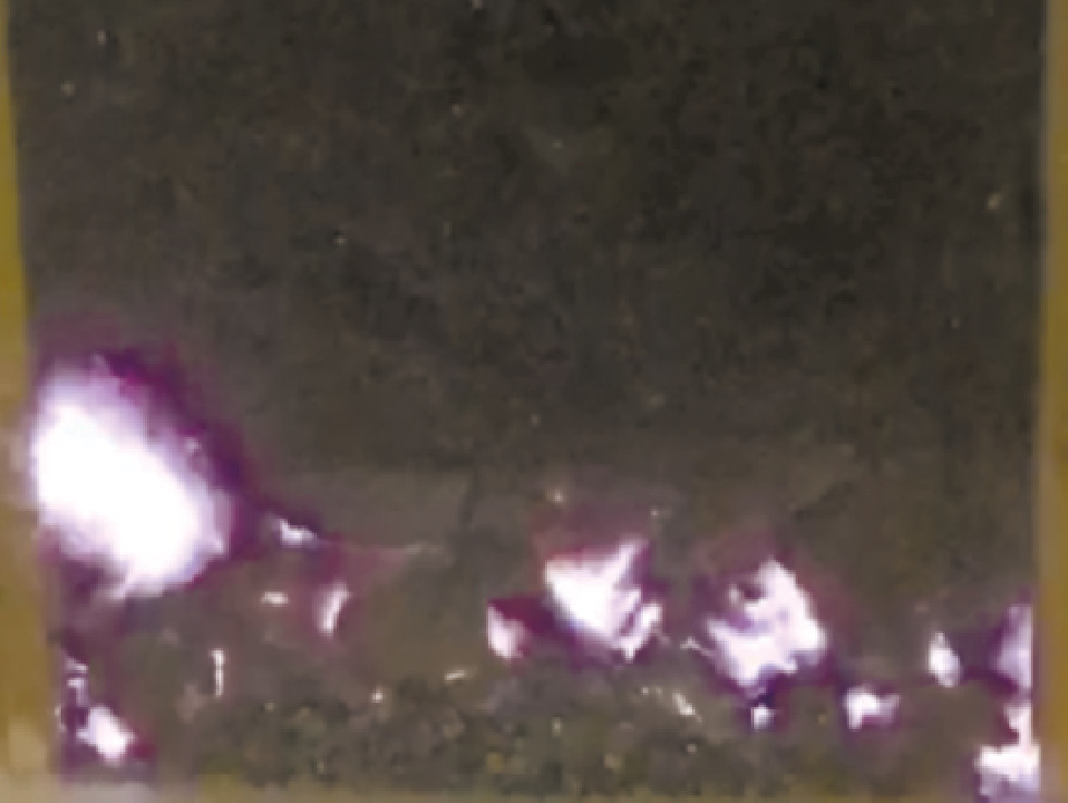 В процессе экспериментов частота работы устройства f изменялась от 10 до 40 Гц, зарядка накопительного конденсатора осуществлялась в диапазоне напряжений UC = (7–10) кВ. При увеличении f и UC количество разрядных каналов и интенсивность перемешивания гранул возрастали.